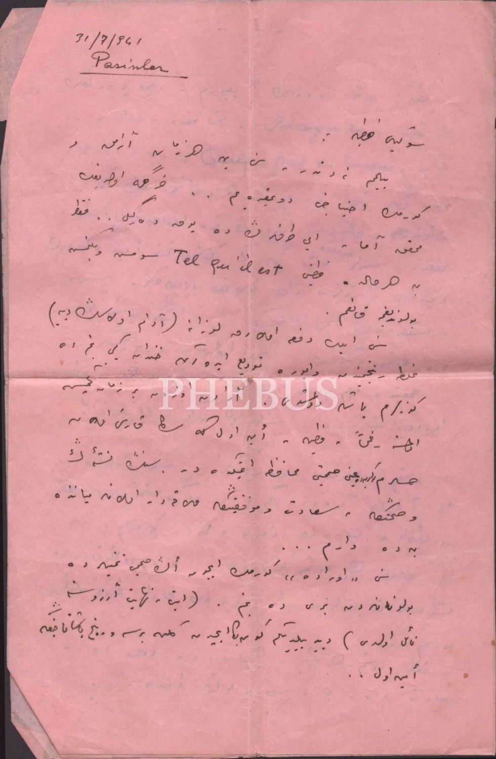 Tereke; bayram tebriği yazılı kartvizitler, Fatin Narin´e ait kartvizitler, 4 adet kartpostal ve 2 adet mektup bulunmaktadır.