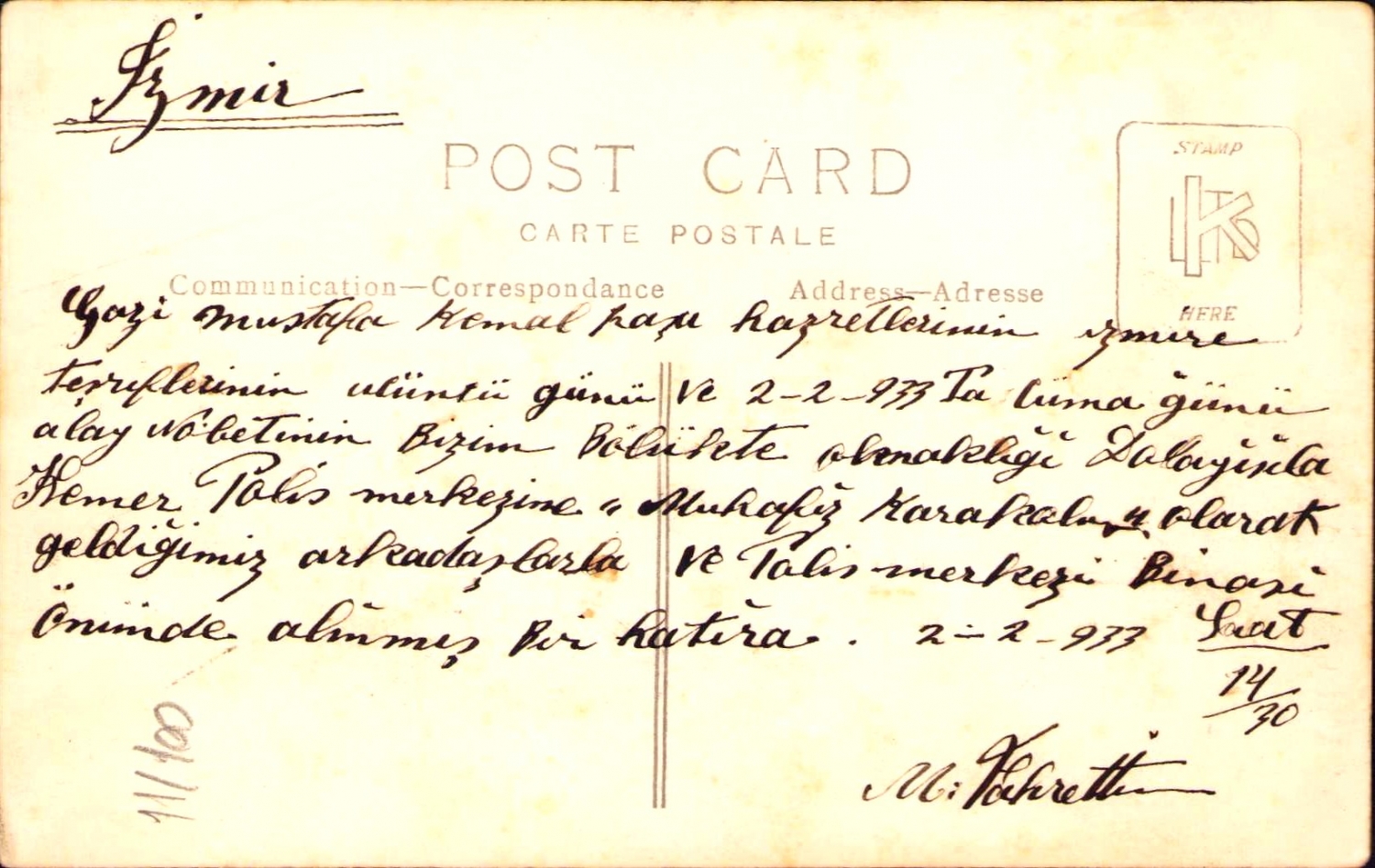 Gazi Mustafa Kemal Paşa Hazretlerinin İzmir'e teşrif hatırası, Kemer Polis Merkezi, 2.2 1933