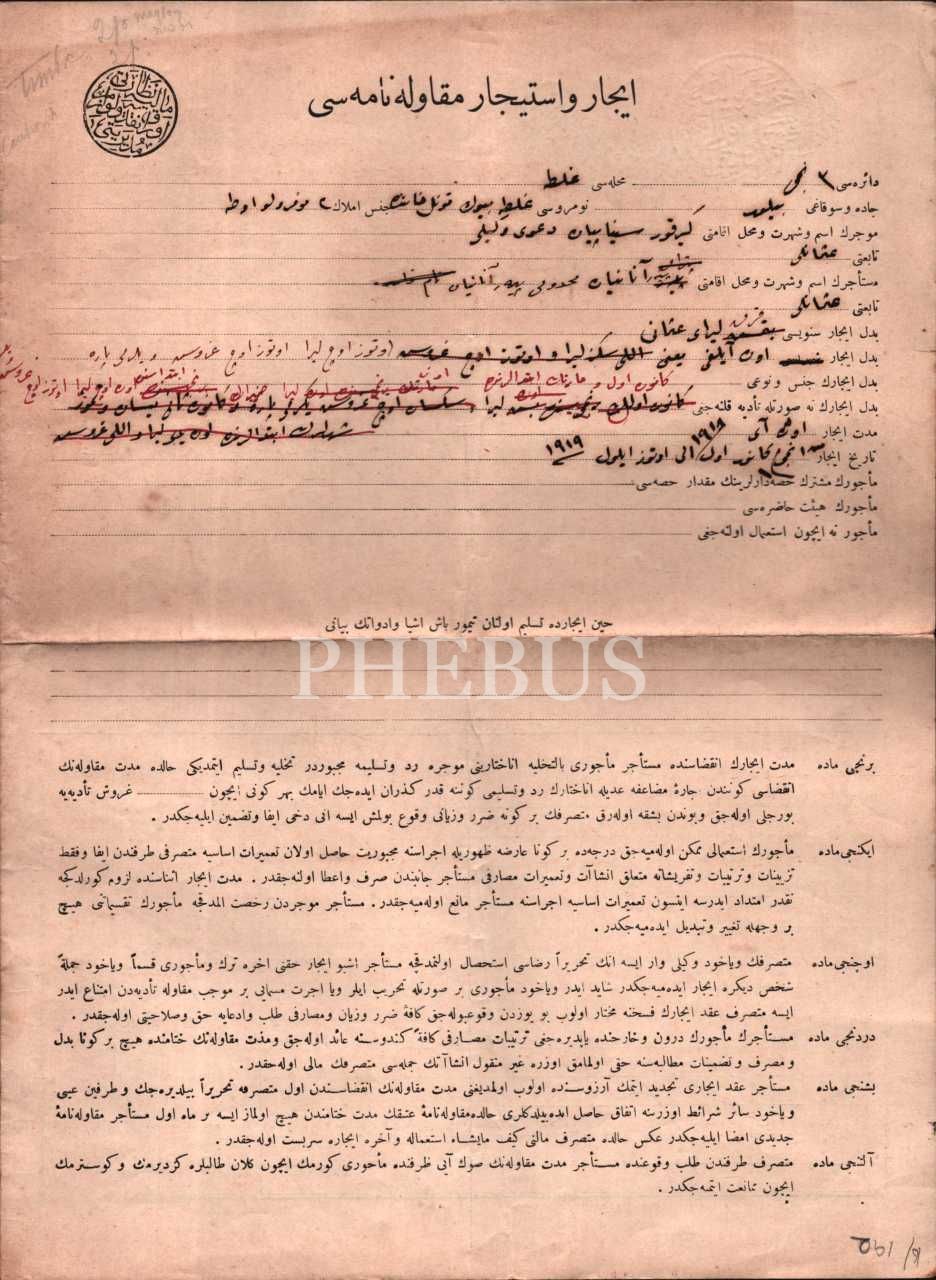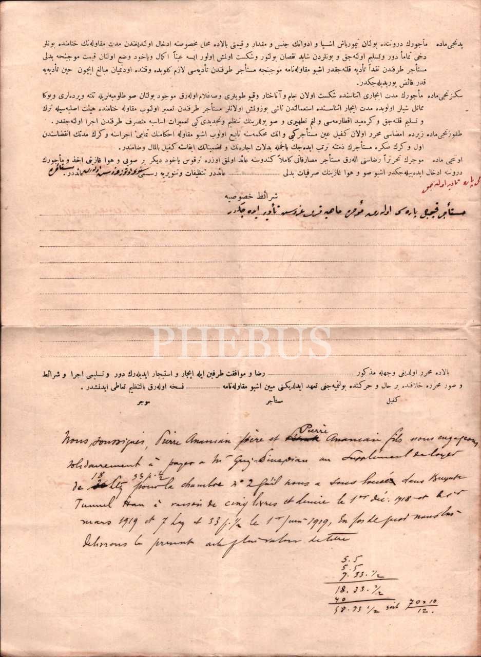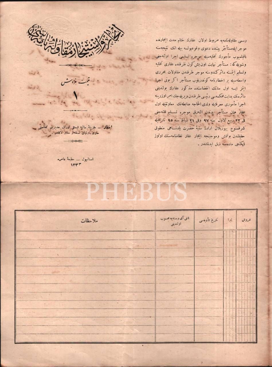 Oda kira sözleşmesi, Galata/İstanbul 1919, 25x34 cm