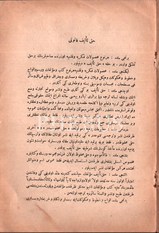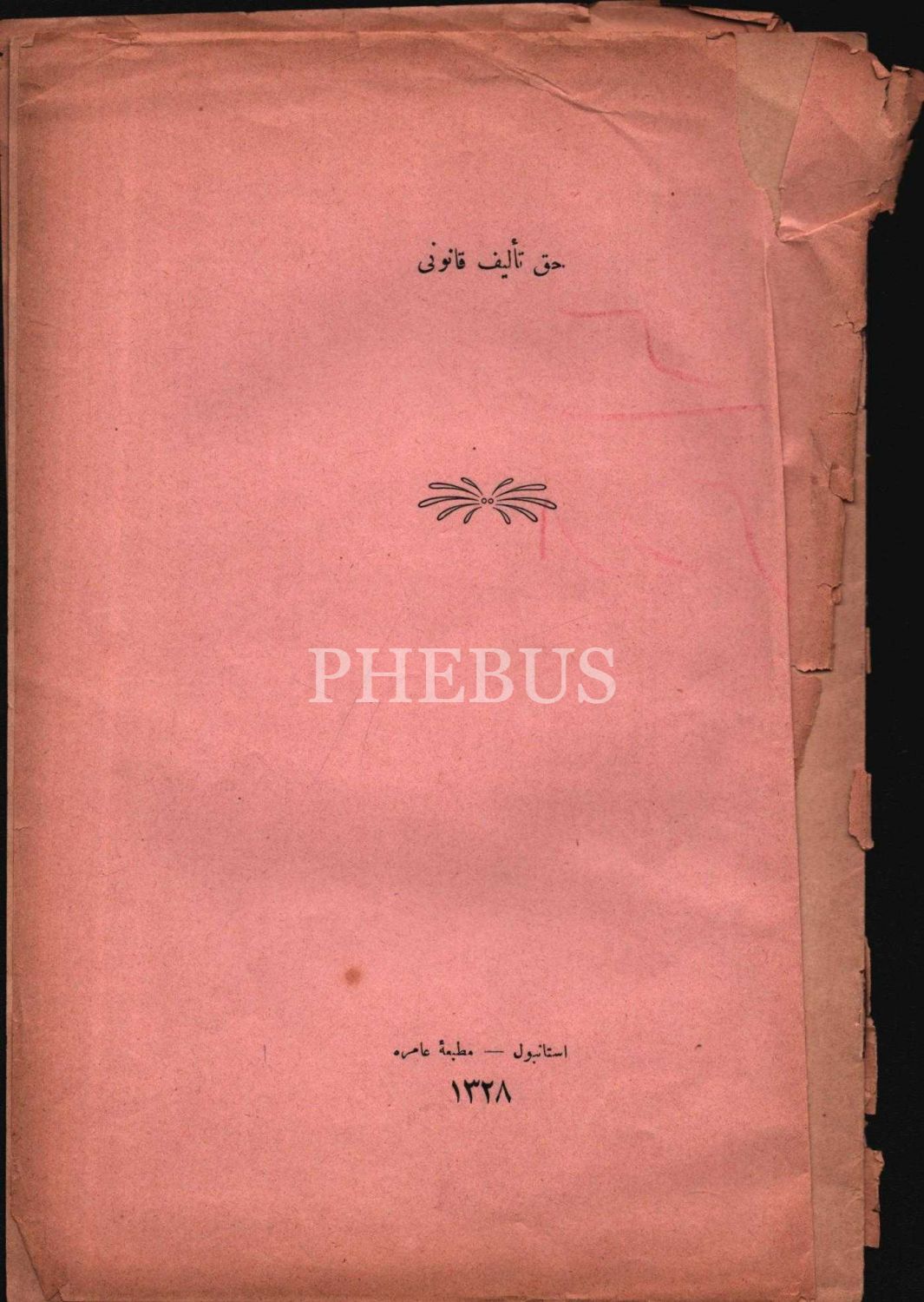 HAKK-I TELİF KANUNU, Amire Matbaası, İstanbul 1328, 8 s., 16x24 cm