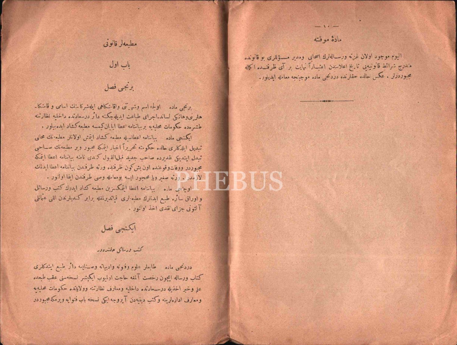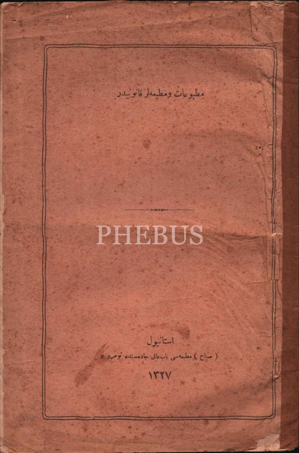 MATBUAT VE MATBAALAR KANUNU, Sabah Matbaası, İstanbul 1327, 14 s., 16x23 cm