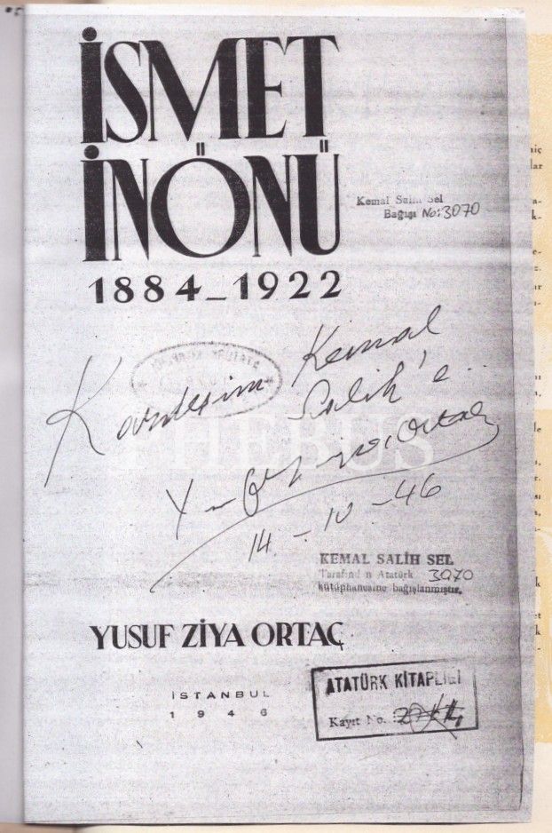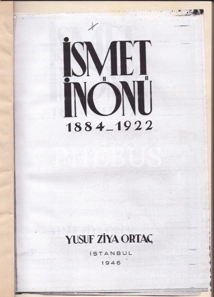 İSMET İNÖNÜ (1884-1922), Yusuf Ziya Ortaç, İstanbul 1940, 112 s., 20x29 cm