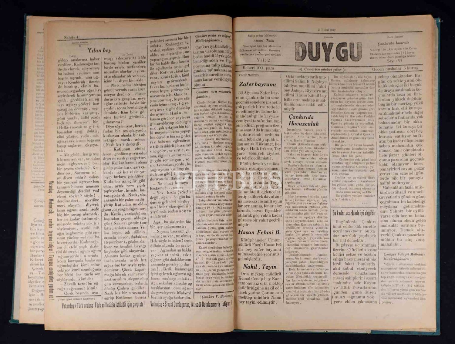 Çankırı´da 1931-32 yıllarında yayımlanan DUYGU gazetesinin 49 sayısı (53-102), 31x47 cm