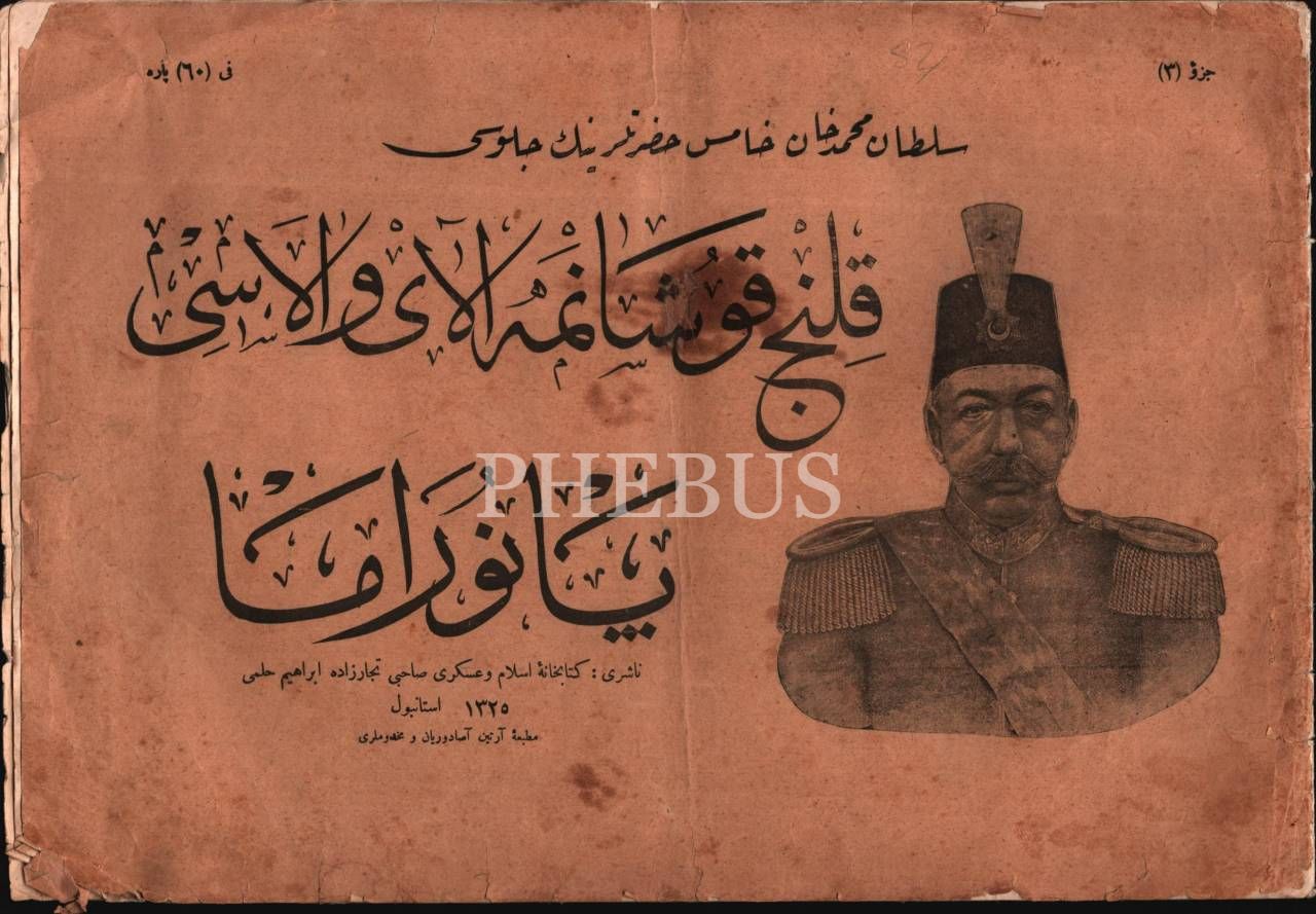 SULTAN MEHMED HAN-I HÂMİS HAZRETLERİNİN CÜLÛSU VE KILIÇ KUŞANMA ALAY-I VÂLÂSI PANORAMA (Albüm), Artin Matbaası, İstanbul 1325, 8 sayfa, 24x34 cm