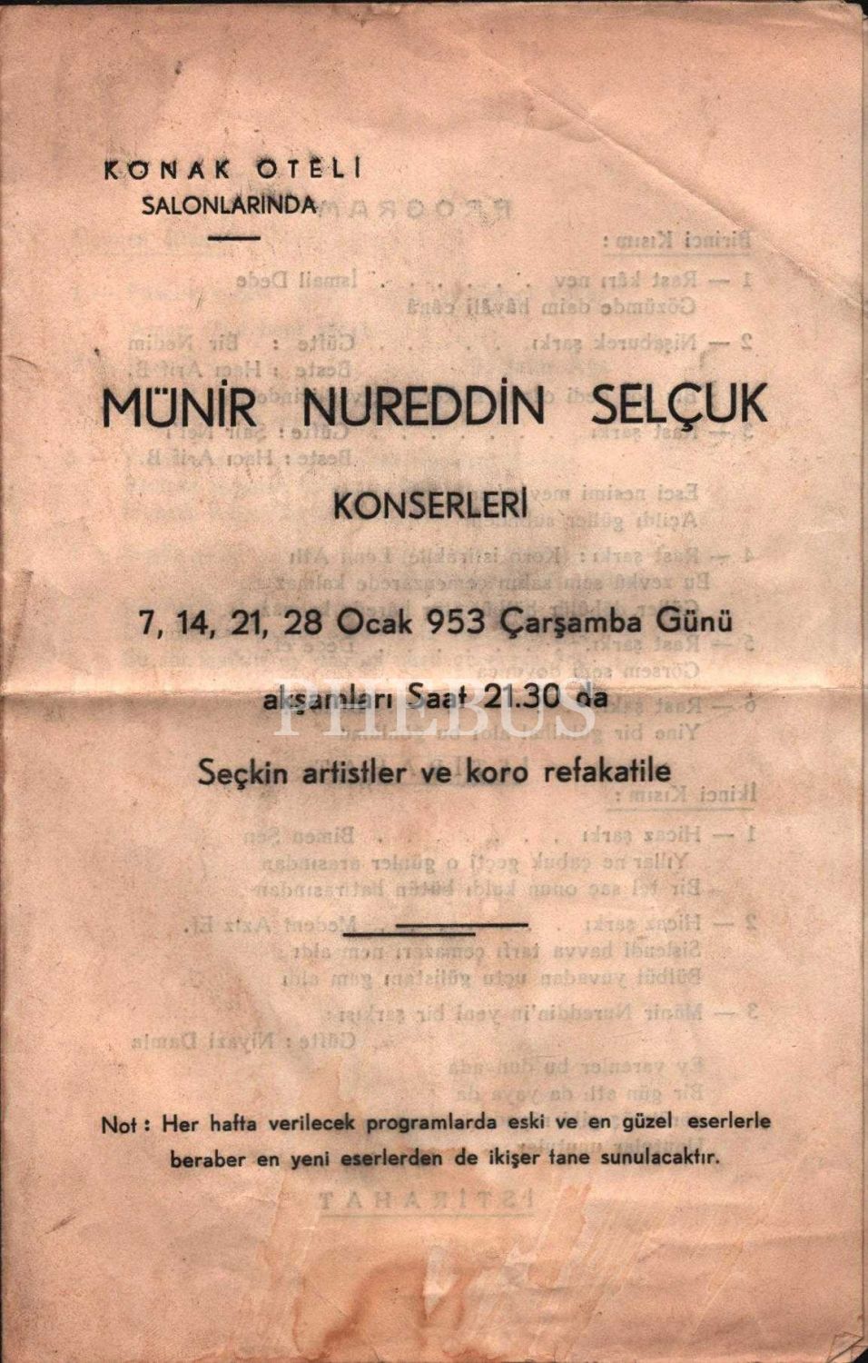 Münir Nurettin Selçuk Konser Programı, Ocak 1953, 15x23 cm