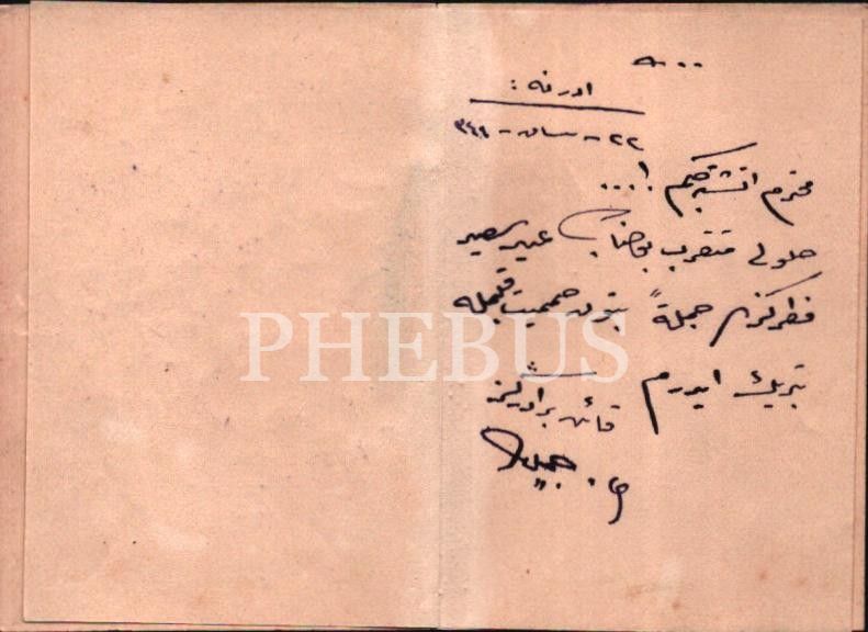 Gofre çiçek görselli, kayınbirader tarafından gönderilmiş 1341 tarihli bayram tebrik kartı, 5x7 cm