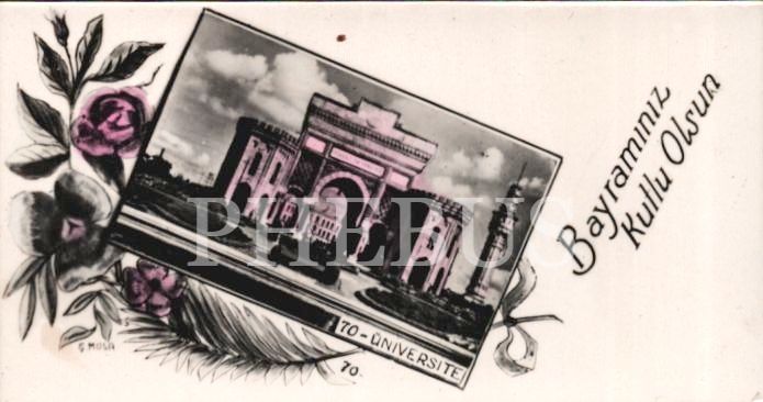 İstanbul Üniversitesi/Bâb-ı Seraskerî görselli bayram tebrik kartı, 5x9 cm