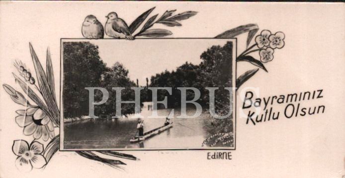 Edirne görselli 1953 tarihli bayram tebrik kartı, 5x9 cm