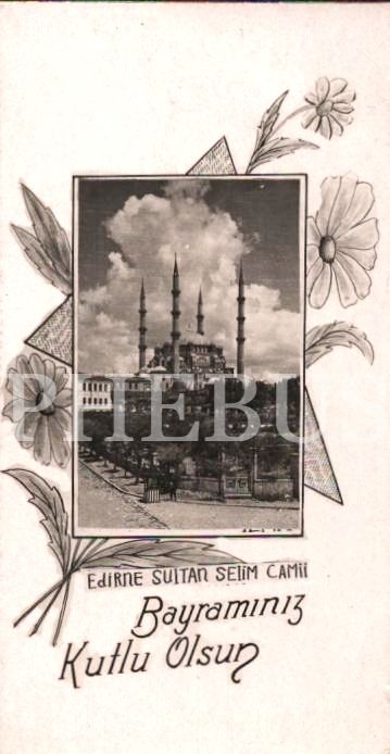 Edirne Selimiye Camii görselli 1942 tarihli bayram tebrik kartı, 5x9 cm