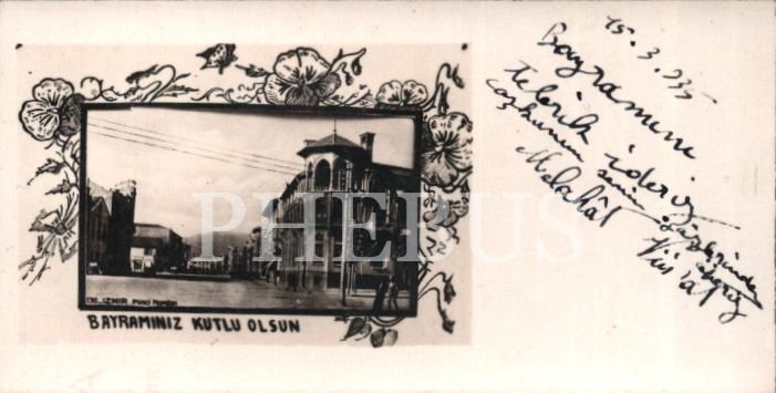İzmir İkinci Kordon görselli 1935 tarihli bayram tebrik kartı, 5x9 cm
