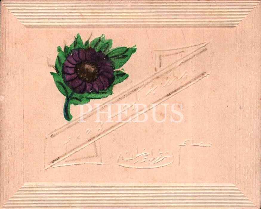 Gofre yazılı ve çiçek görselli bayram tebrik kartı, 9x11 cm