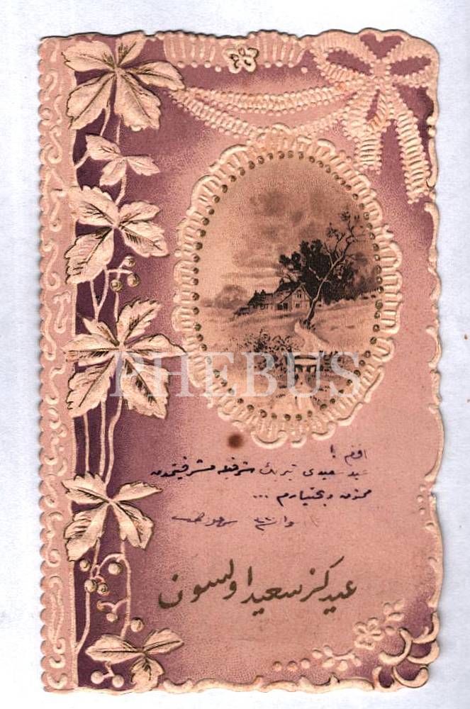 Gofre desenli 1330 tarihli bayram tebrik kartı, 7x12 cm