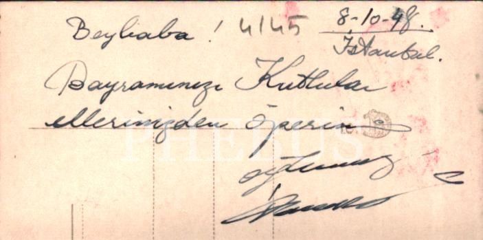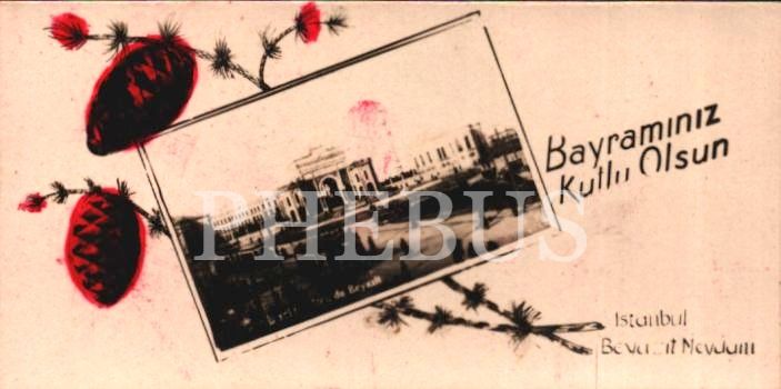 Beyazıt Meydanı görselli 1948 tarihli bayram tebrik kartı, 5x9 cm