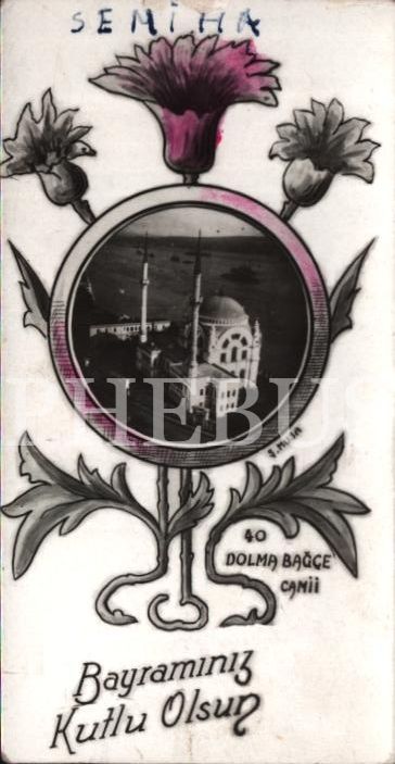 "Dolma Bağçe Camii" görselli bayram tebrik kartı, 5x9 cm