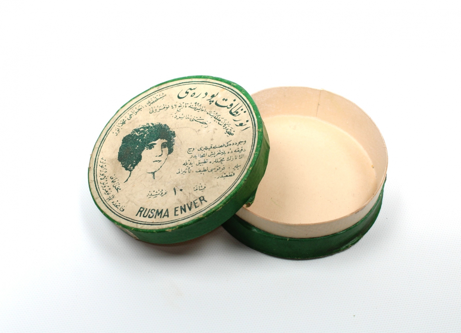 Itriyat, Osmanlıca Enver Nezafet Pudrası, Fatih'te Altay Mahallesinde Eczacı Servet Efendi karton kutu, 8x2 cm.