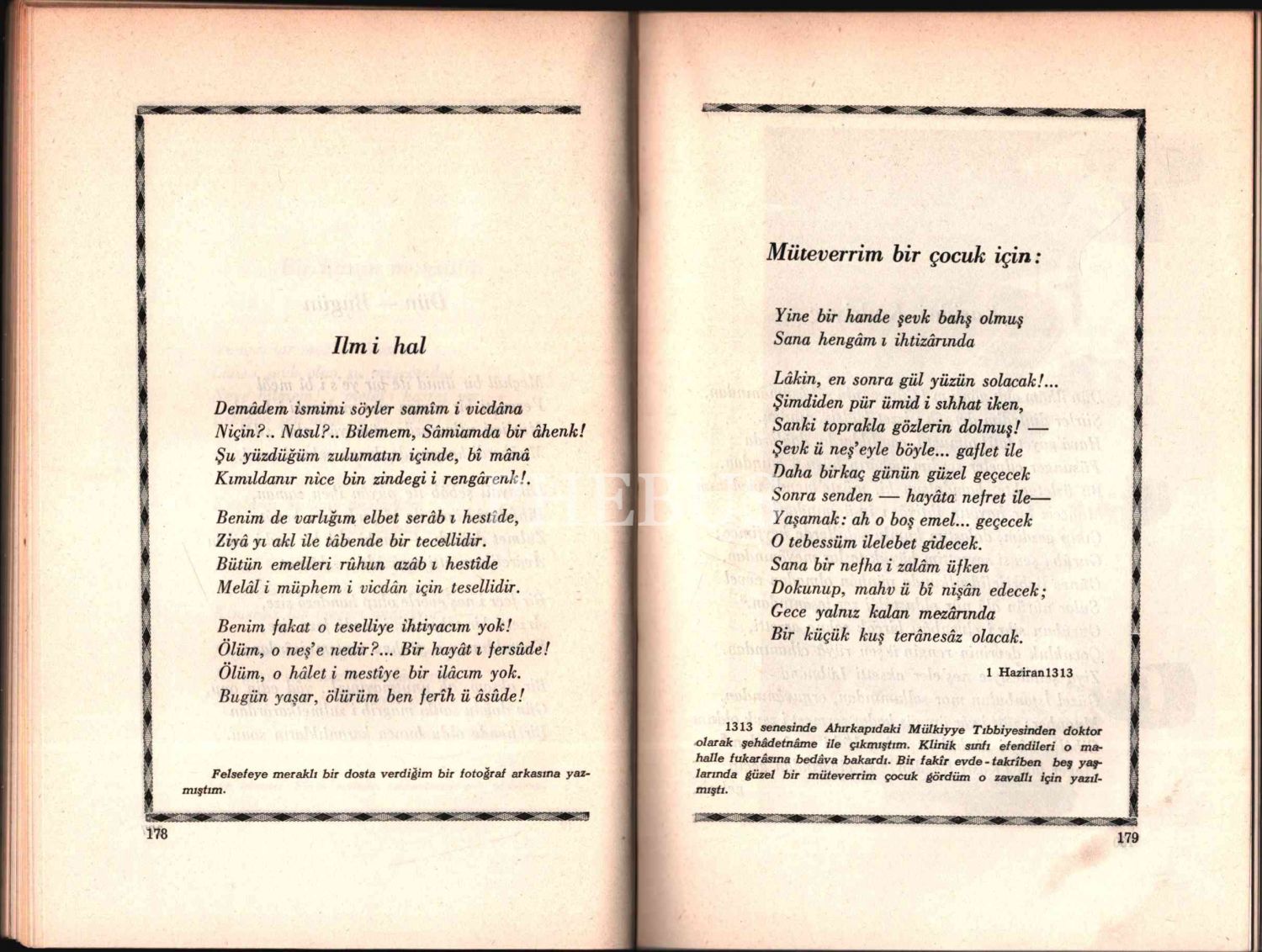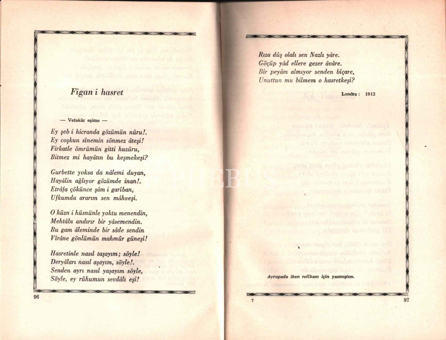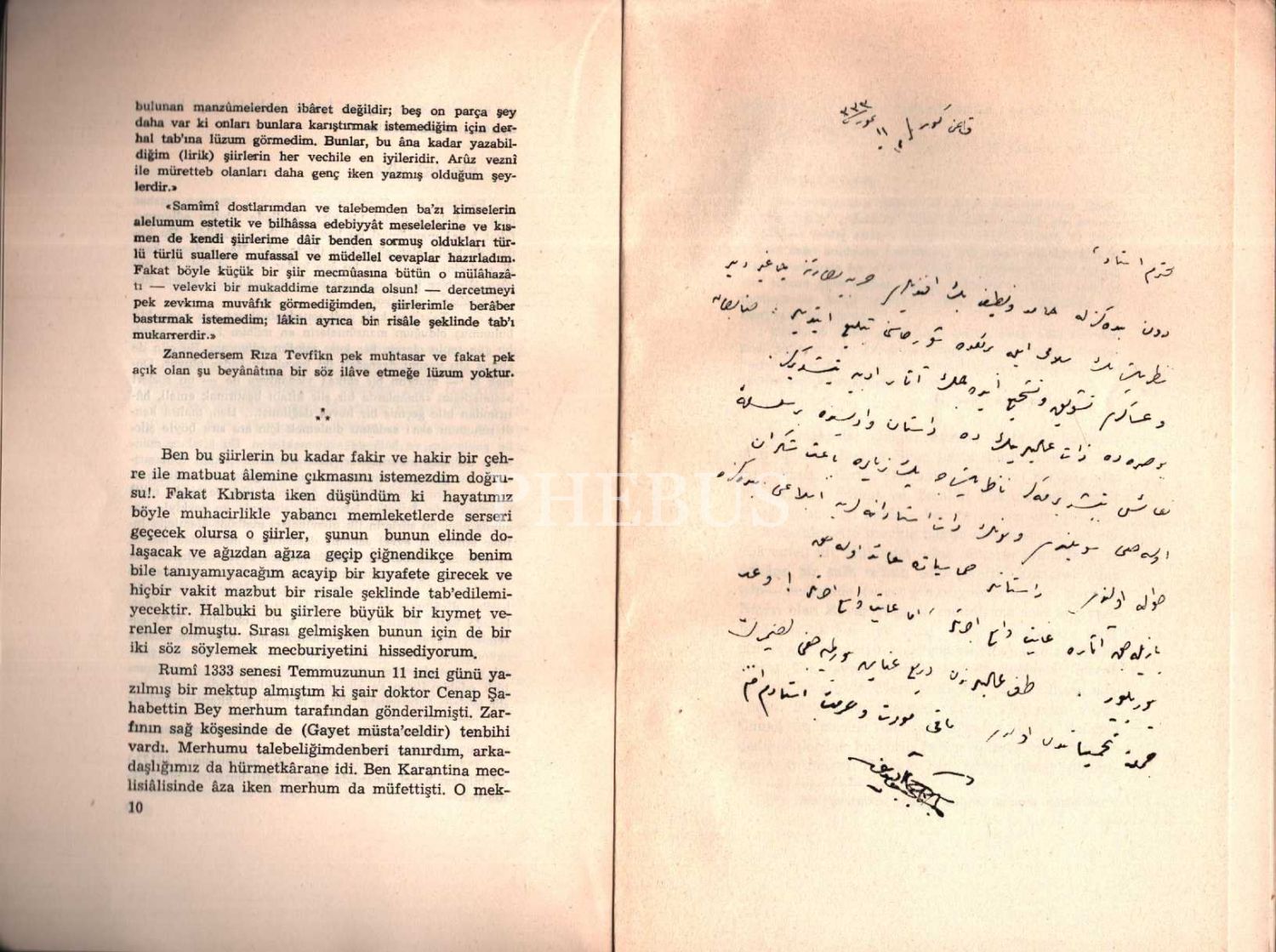 Aslında Mekteb-i Tıbbiye mezunu olmasına ve felsefe eğitimi almamış olmasına karşın, felsefeye ilgisi nedeniyle “Feylesof Rıza” olarak tanınan Rıza Tevfik (1869 – 1949); felsefeci, siyasetçi ve şair kimliğiyle son dönem Osmanlı aydınlarının en ilginç simalarından biridir. Sevr Antlaşması’nı imzalayan Osmanlı delegasyonunda bulunduğu için, diğer “Yüzellilikler” gibi uzun yıllar sürgünde yaşamıştır. "Serab-ı Ömrüm" Feylesof’un bütün şiirlerini bir araya getirdiği kitabıdır. Hemen hemen bütün kopyaları şair tarafından imzalanmış olan eserin İMZASIZ bir kopyası!