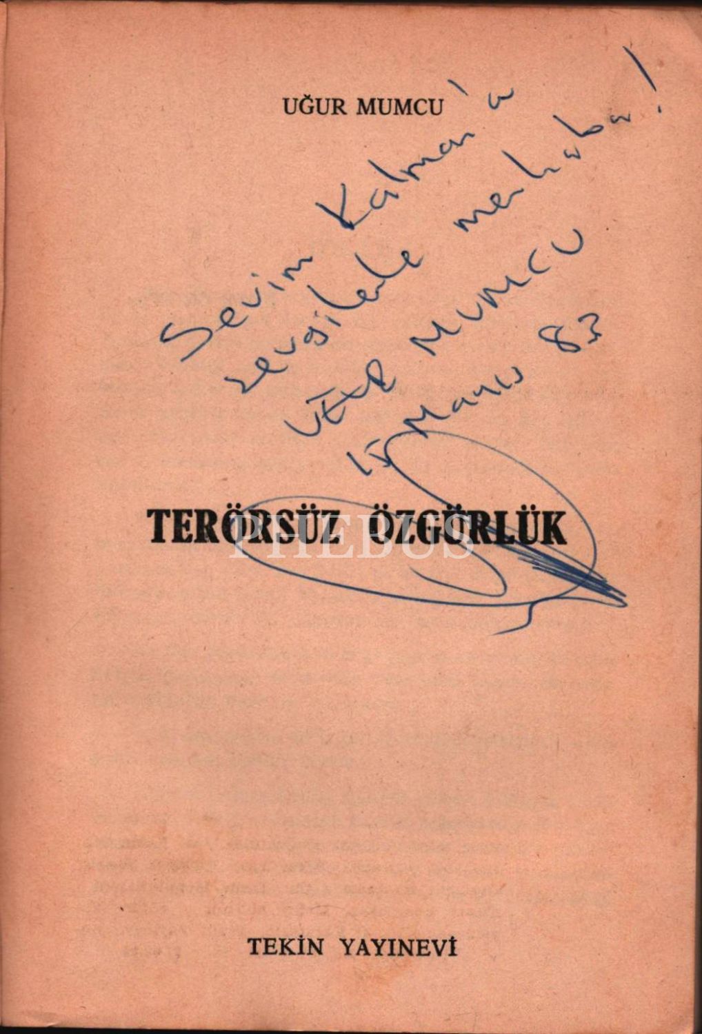 TERÖRSÜZ ÖZGÜRLÜK, Uğur Mumcu, 1982, Tekin Yayınevi, 183 sayfa, 13,5x19,5 cm İTHAFLI VE İMZALI…