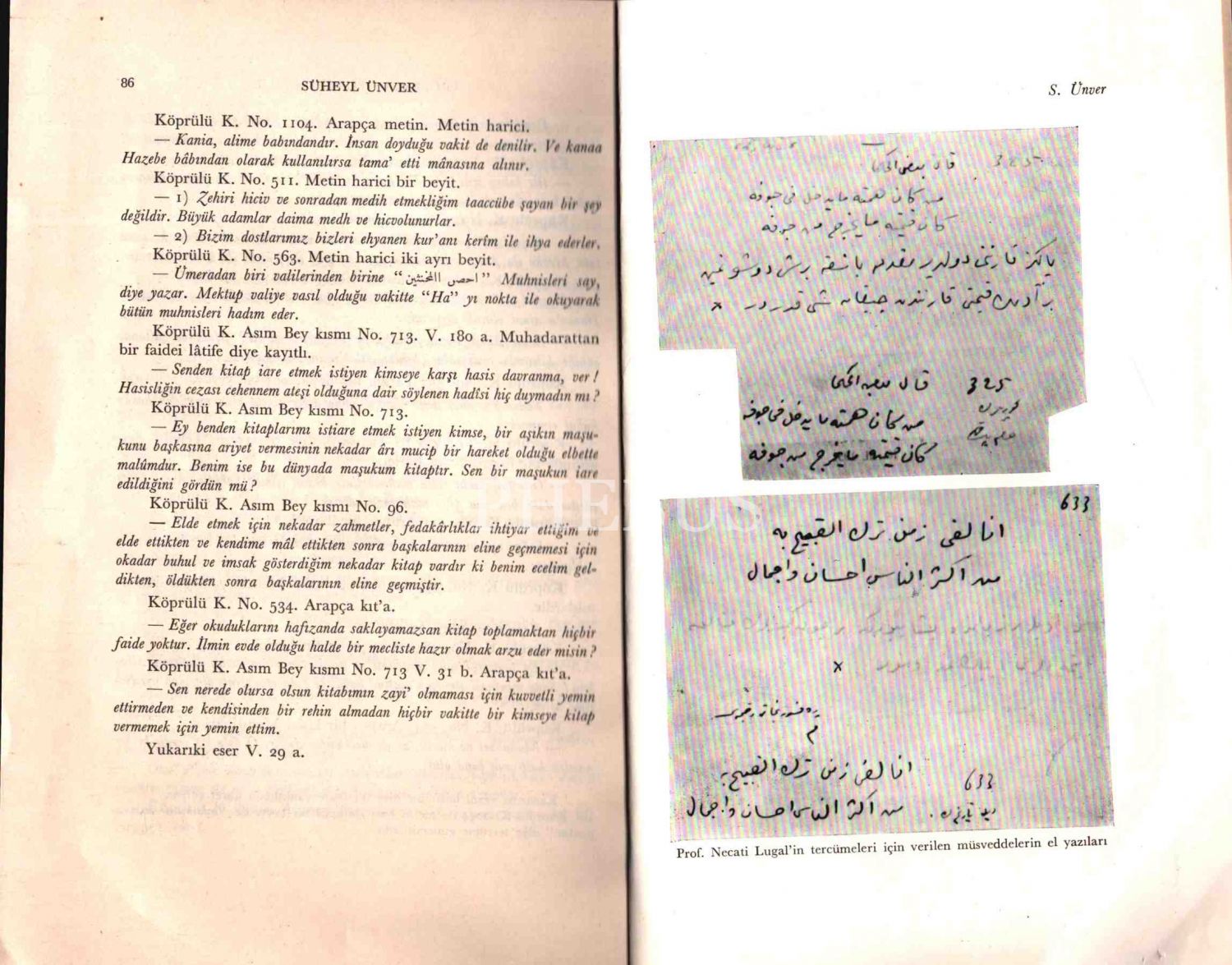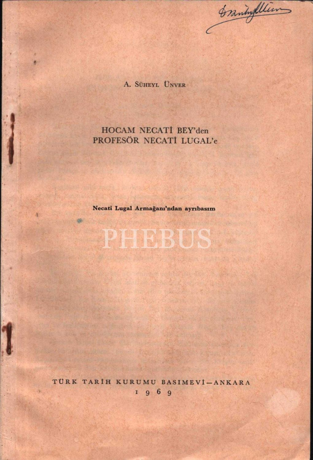 Tıp doktorluğunun yanı sıra yazar, araştırmacı, arşivci, minyatürcü, tezyinatçı, hattat ve neyzen olan; çok sayıda kitabıyla ve dergi, gazete ve ansiklopedilere yazdığı sayısız yazıyla Türk kültürüne çok önemli katkılar sağlamış olan Ord. Prof. Süheyl Ünver´in (1898 - 1986); hocası Necati Lugal hakkındaki yazısı... Necati Lugal Aramağanı´ndan ayrı basım... Süheyl Ünver tarafından ithafsız imzalı...