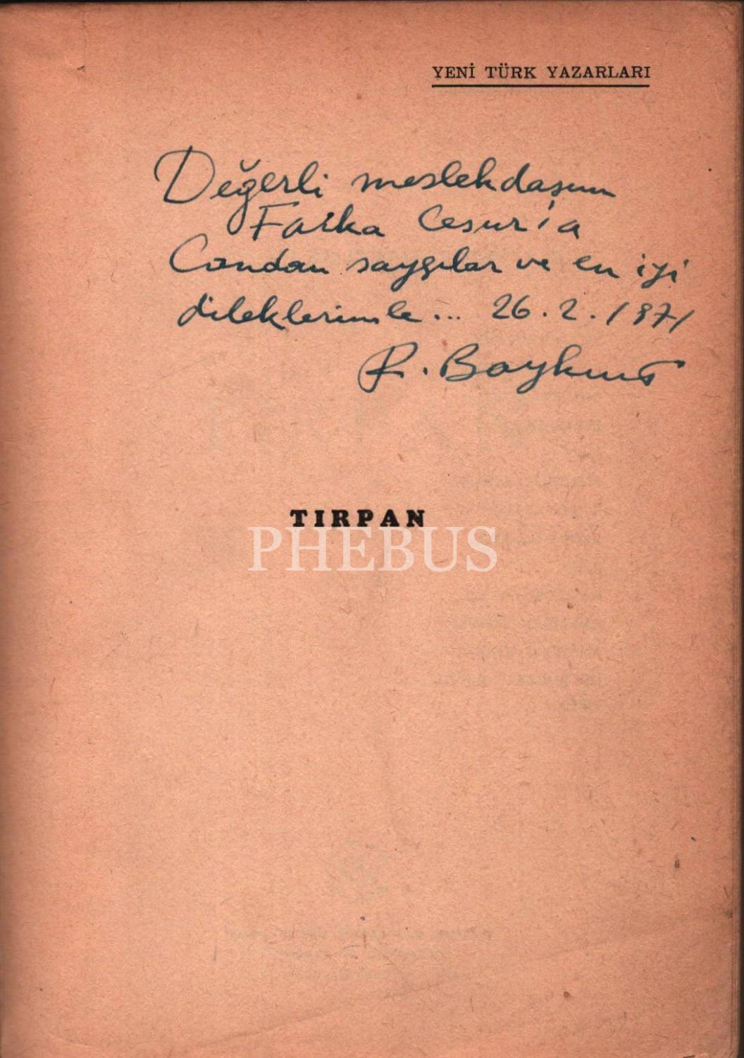 TIRPAN, Fakir Baykurt, 1970, Remzi Kitabevi, 375 sayfa, 13,5x20 cm İTHAFLI VE İMZALI…