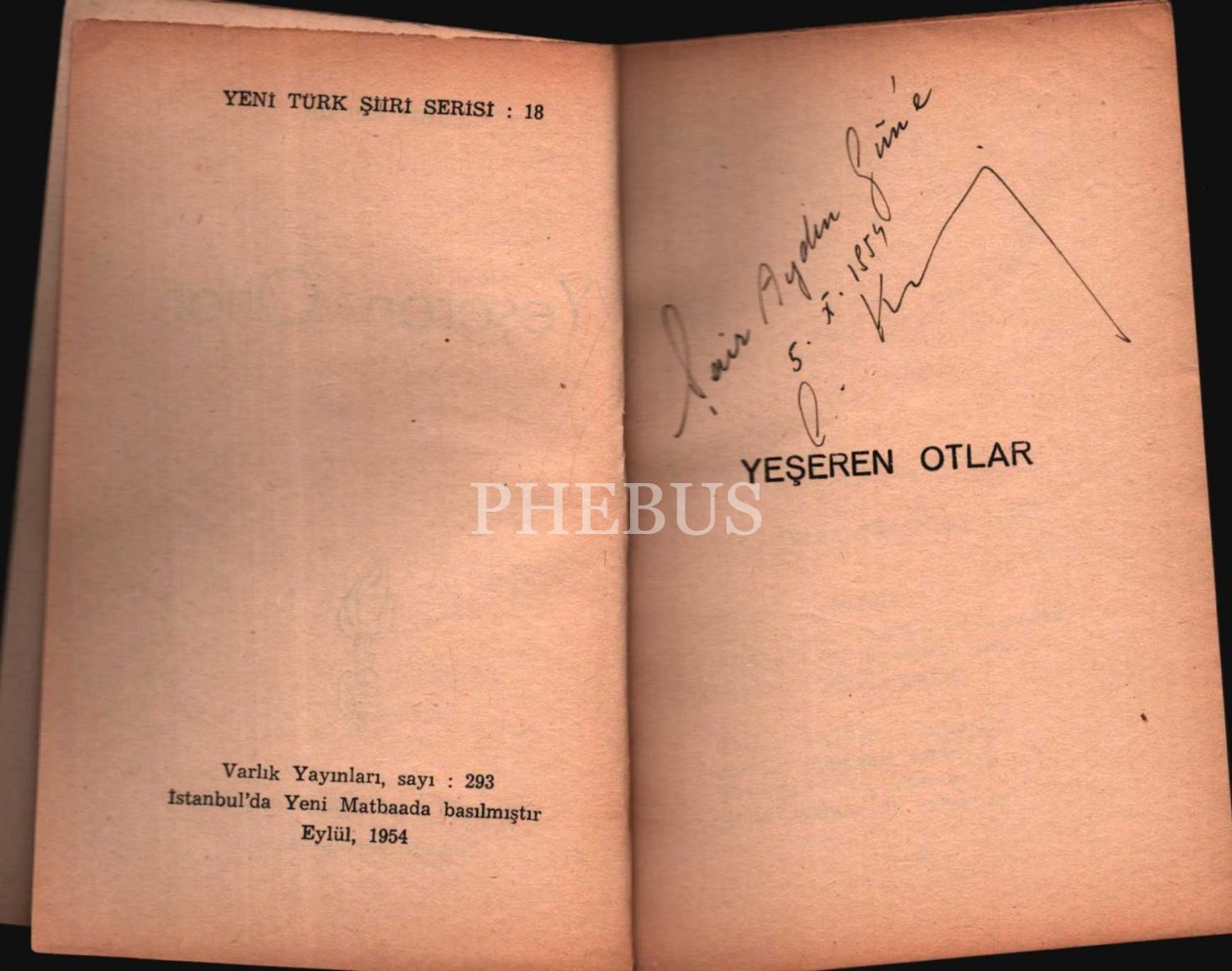 YEŞEREN OTLAR, Cahit Külebi, 1954, Varlık Yayınları, 80 sayfa, 12x16 cm İTHAFLI VE İMZALI…