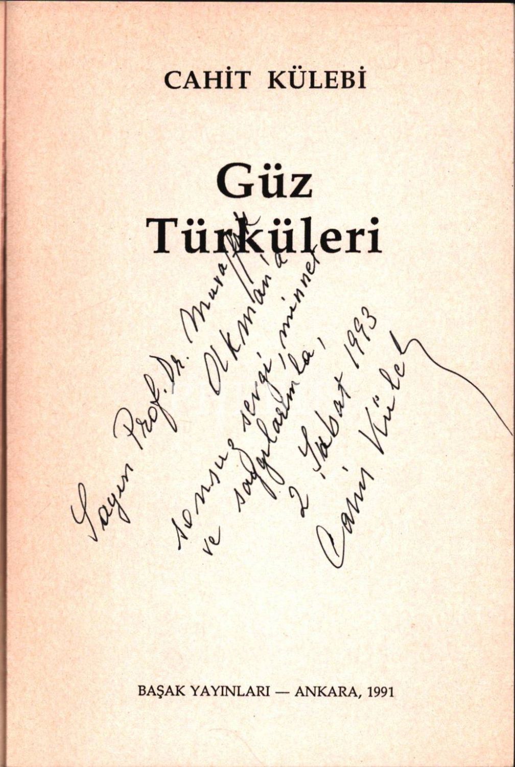 GÜZ TÜRKÜLERİ, Cahit Külebi, 1991, Başak yayınları, 46 sayfa, 13x19,5 cm İTHAFLI VE İMZALI…
