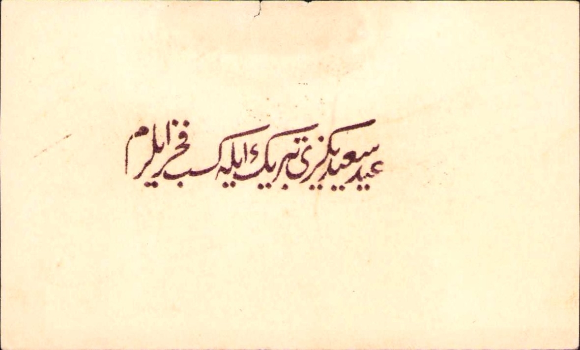Osmanlıca bayram tebrik kartı, "Iyd'inizi Tebrik İle Kesb-i Fahr Eylerim", 10x6 cm