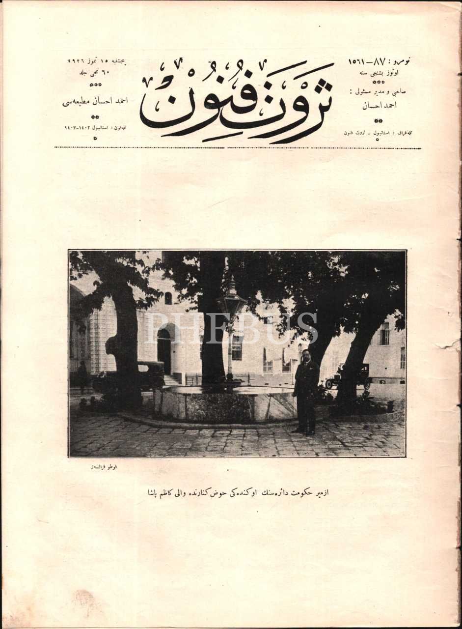 SERVET-İ FÜNUN dergisinin, İzmir Valisi Kâzım Paşa kapaklı 87. sayısı, 15 Temmuz 1926, 24x32 cm