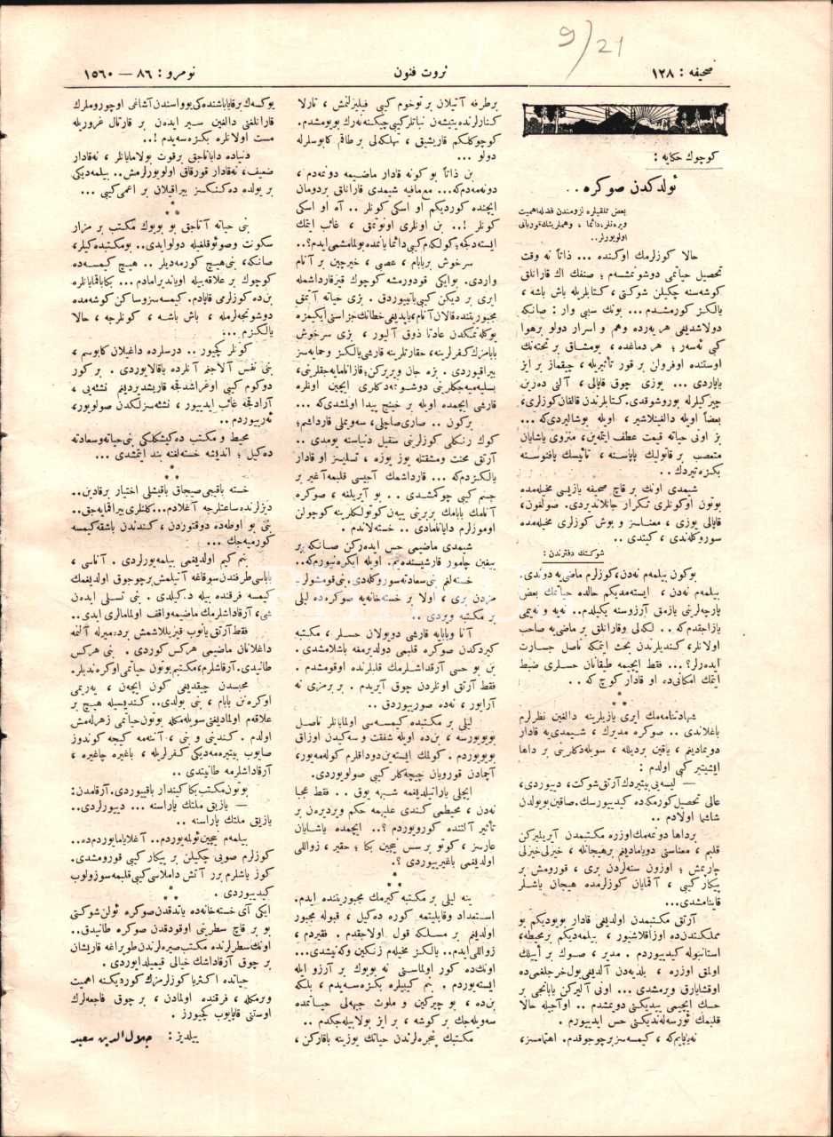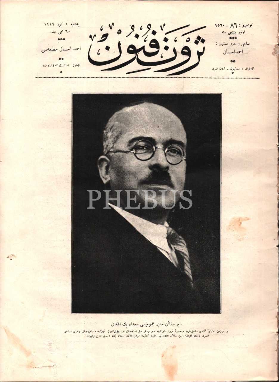 SERVET-İ FÜNUN dergisinin, Seyr-i Sefain Müdürü Sadullah Bey kapaklı 86. sayısı, 8 Temmuz 1926, 24x32 cm