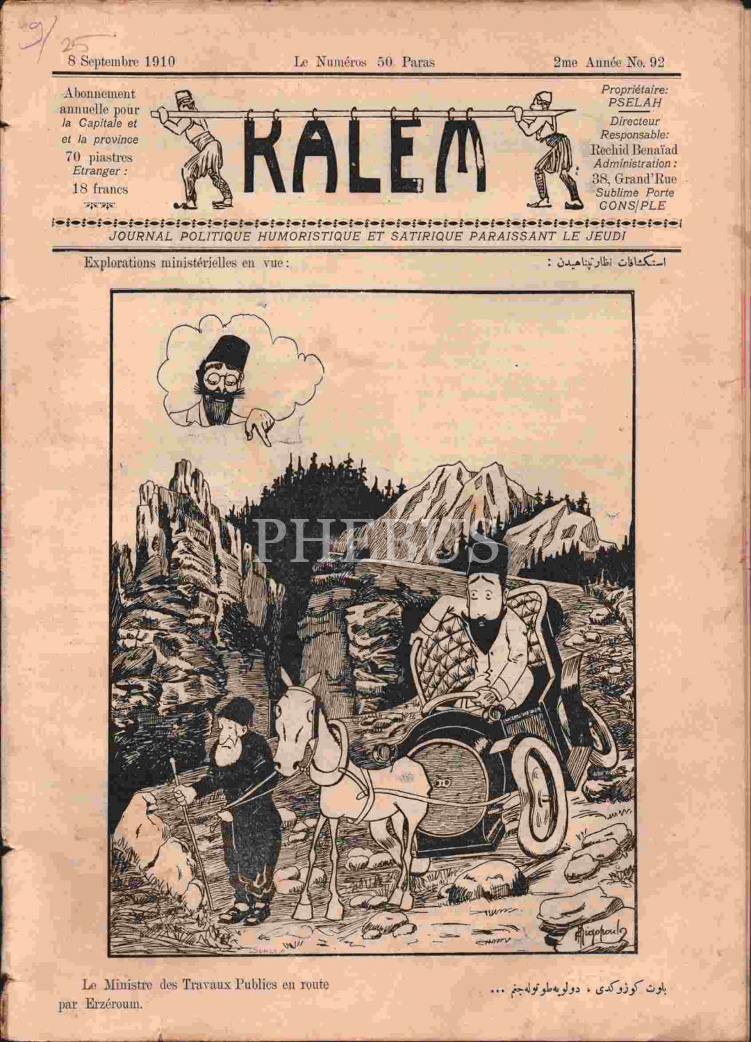 Türk mizahı ve karikatürünün öncü dergisi KALEM´in 1325 tarihli 5 sayısı, 21x30 cm