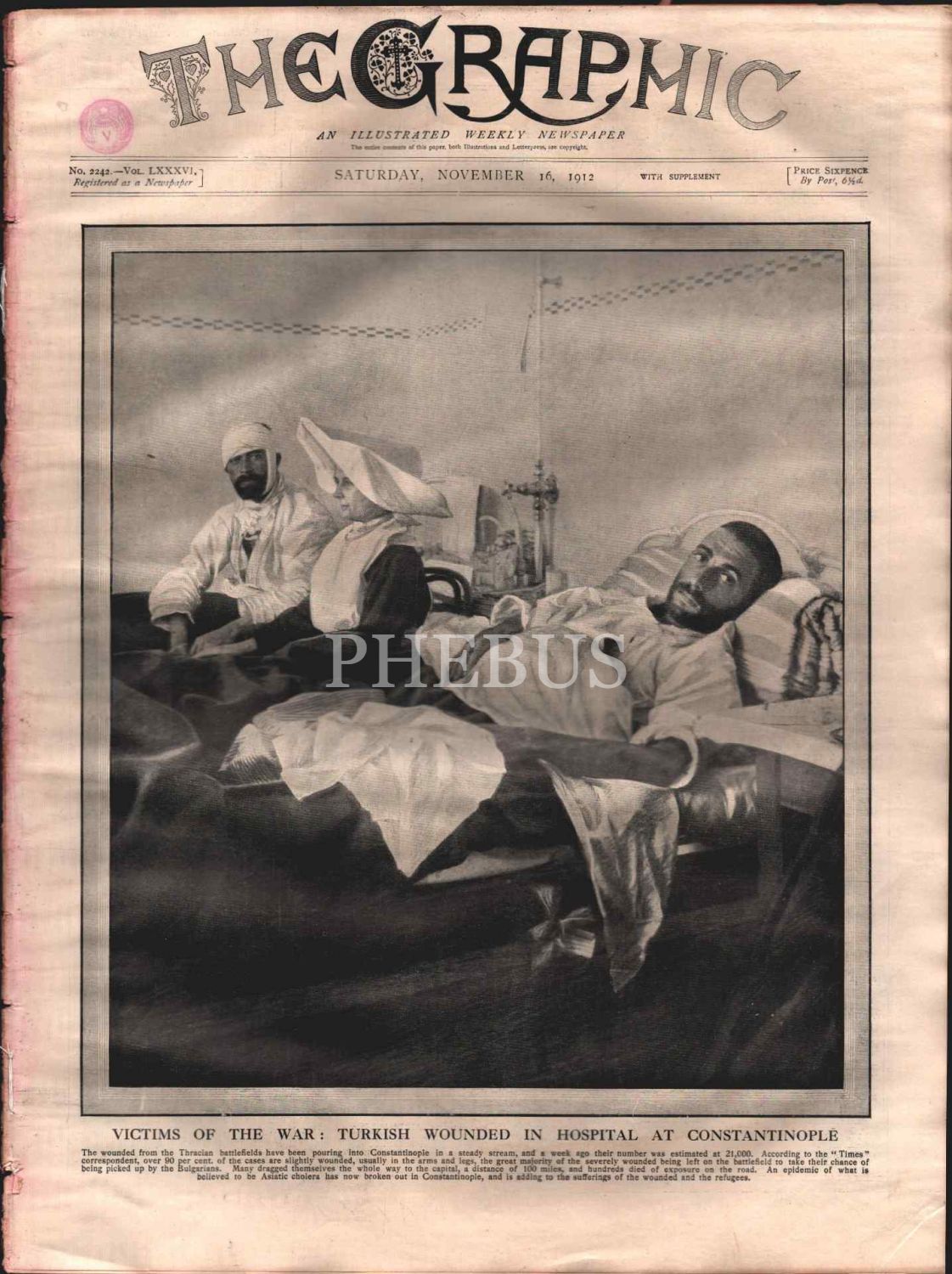 THE GRAPHIC dergisinin "Savaş Kurbanları: Yaralı Türkler İstanbul´da Hastanede" başlıklı kapağıyla 2242. sayısı, 1912, 29x40 cm