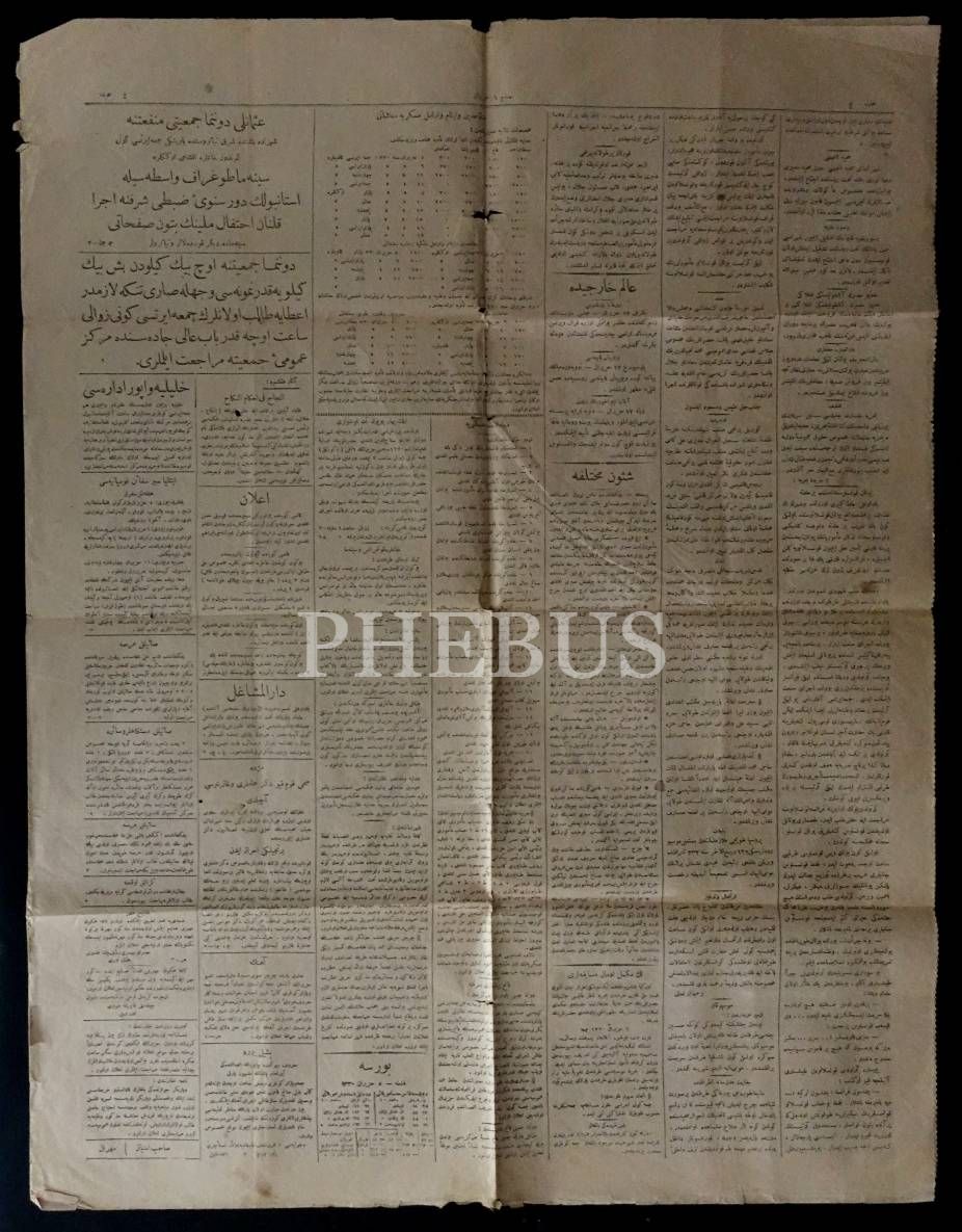 "Devlet-i Osmaniyye ve Bulgaristan", "Yunan Vapurları", "Osmanlı-Yunan Münasebeti", "Efsane Hicret" manşet başlıklarını içermektedir.