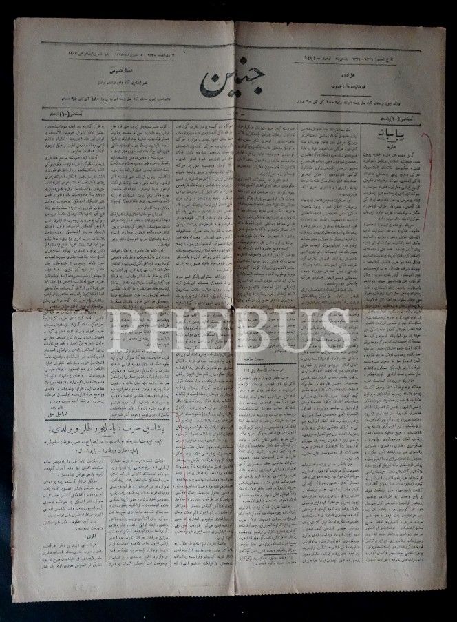 CENİN gazetesinin 5 Teşrinievvel 1328 tarihli sayısı, 45x60 cm