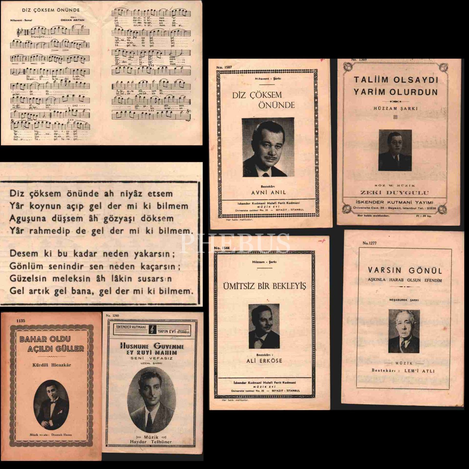 Kudmanizâde Şamlı İskender yayınlarından 9 adet nota, 14x20 cm