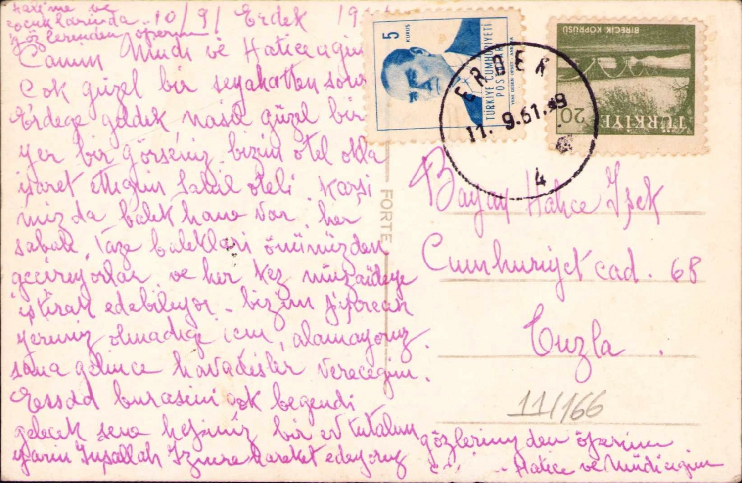 Erdek sahil görünümü, postadan geçmiş, 1961 tarihli