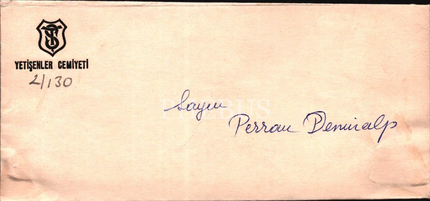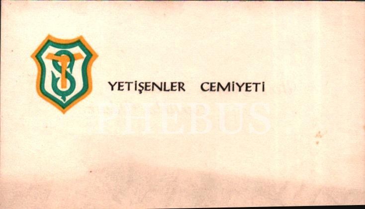 Şişli Terakki Lisesinden Yetişenler Cemiyeti antetli zarf içerisinde davetiye, yaka kartı ve tebrik kartı, 8x17 cm