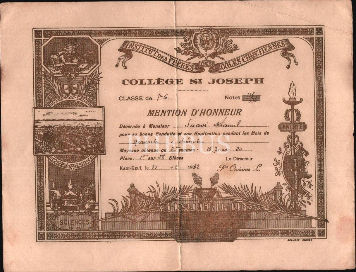 Saint Joseph Lisesi (Kadıköy) aferin kâğıdı, 22 Aralık 1932, 20x26 cm