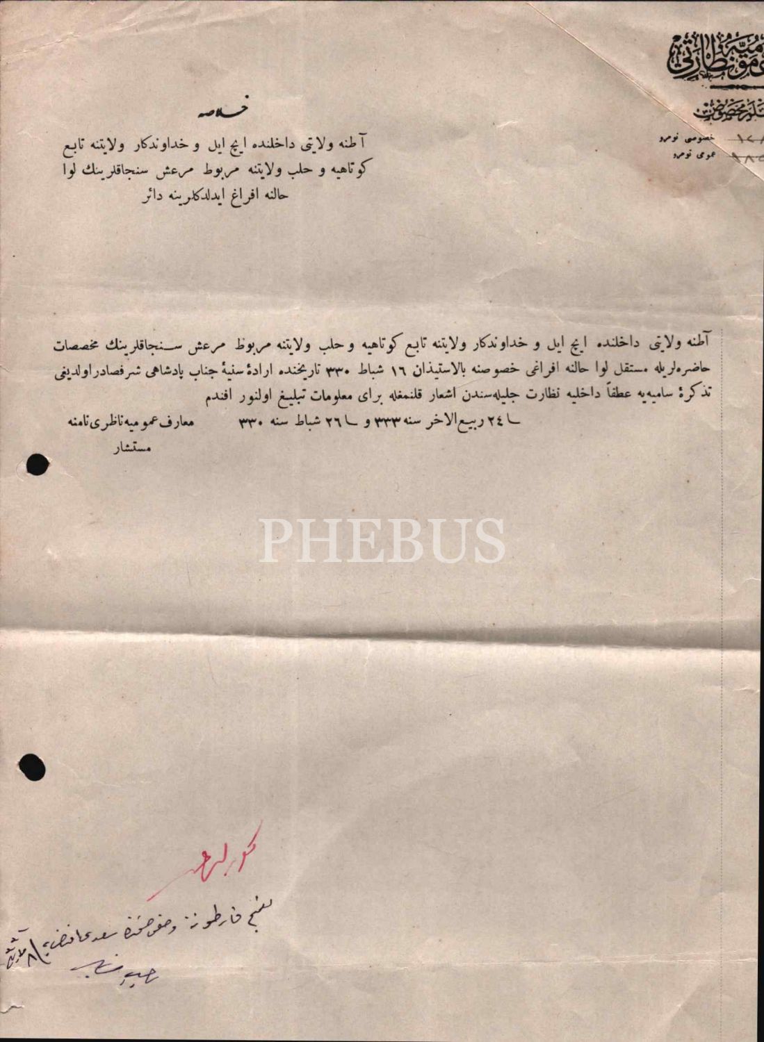 Maarif-i Umumiye Nezareti antetli; İçel, Kütahya, Maraş sancaklarının liva haline getirilmesi ile ilgili 1330 tarihli belge, 22x34 cm