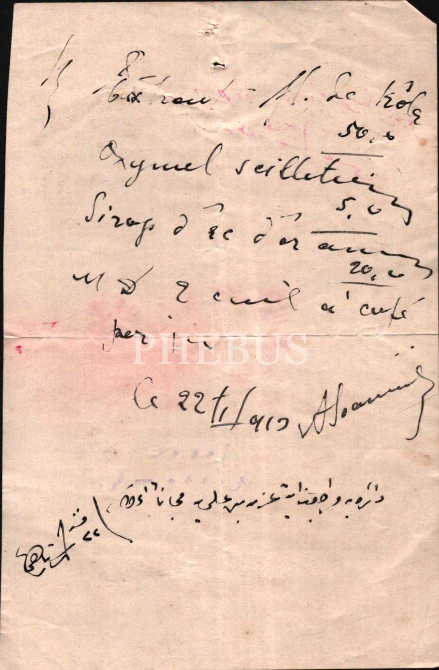 Pharm. M. Kemal damgalı 1913 tarihli Fransızca-Osmanlıca reçete, 13x20 cm