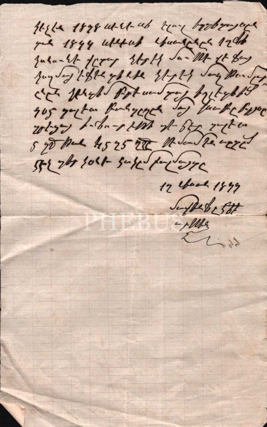 Makyacı Hacı Artin tarafından Ermeni alfabeli Türkçe ile yazılmış, pamuk ticareti konulu yazışma, 1899 tarihli ve imzalı, 13x20 cm