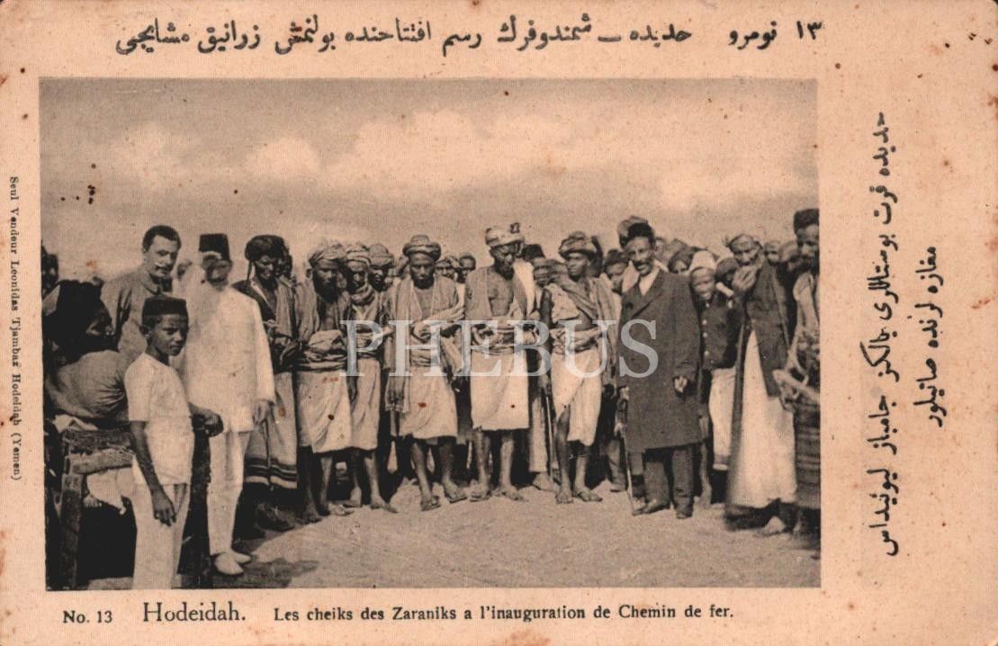 "Hudeyde Zaranik Şeyhleri demiryolunun açılışında", Leonidas Tjambaz Hodeidah, Devlet-i Aliyye Osmaniye Postaları- Yemen