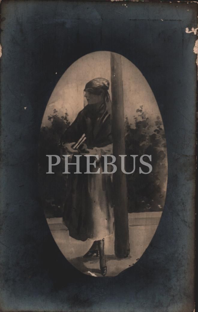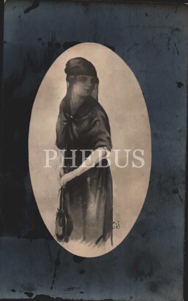 Siyah-beyaz suluboya formunda 2 adet kadın kartpostalı, 8x13 cm
