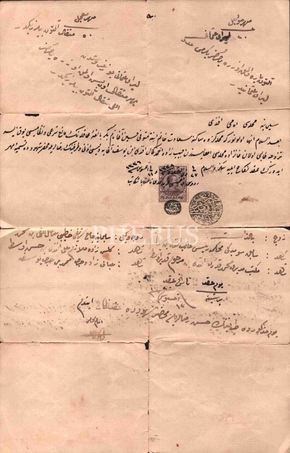 Cezayir Bahr-i Sefid [Akdeniz] Vilayeti Merkez Mahkeme-i Şer´iyyesi mühürlü nikâh akdi, 1336, 23x36 cm
