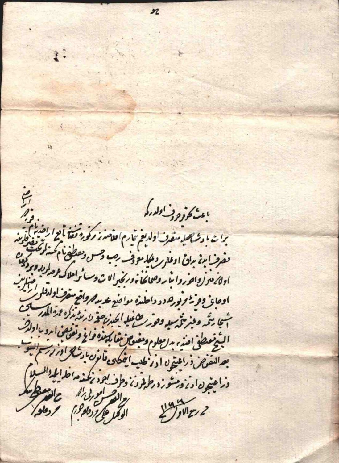 Ev, ahır, anbar, samanlık, değirmen vd.´den oluşan bir mülkün ferağ senedi, 1166, 16x22 cm