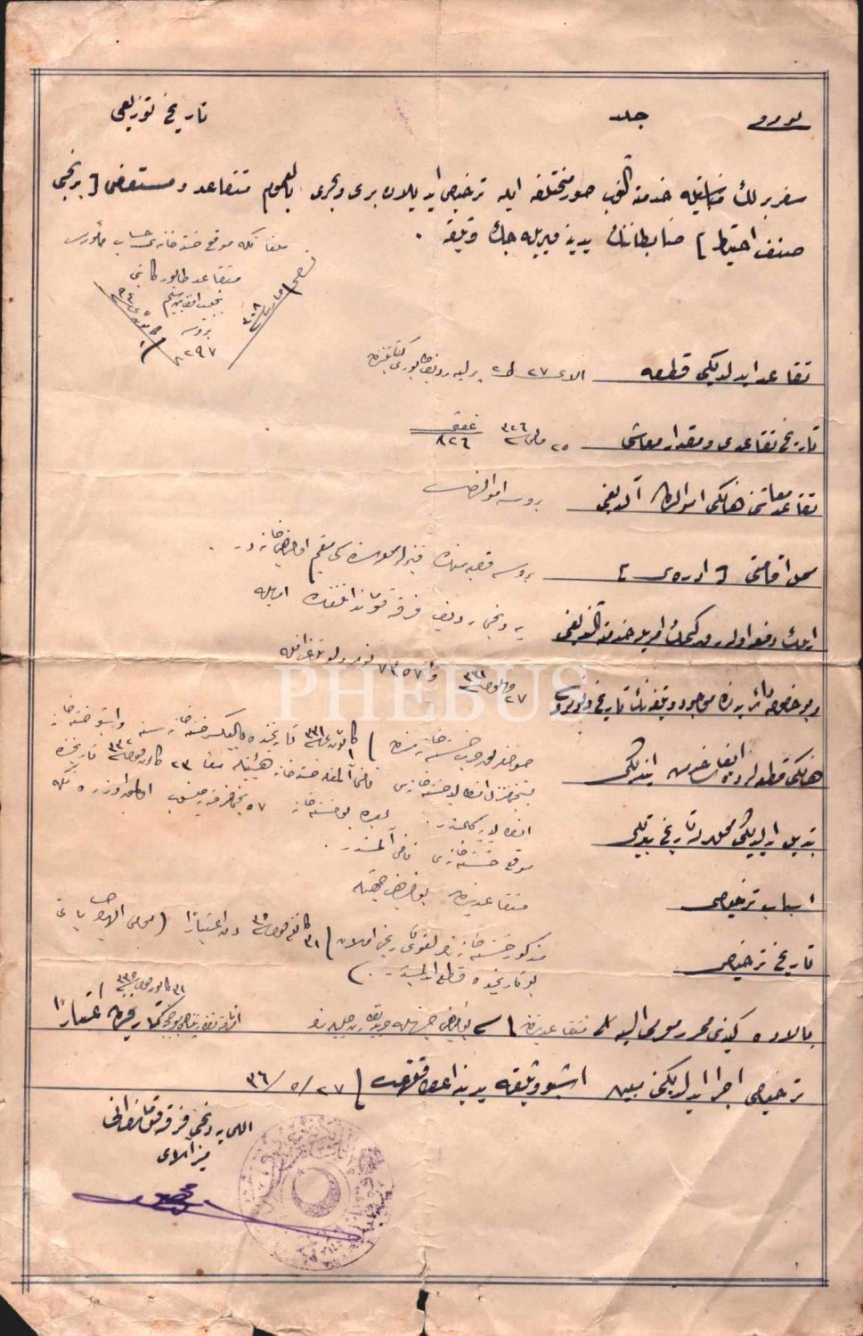 İhtiyat zabitanına mahsus, seferberlikten terhis belgesi, 1336, 17x28 cm