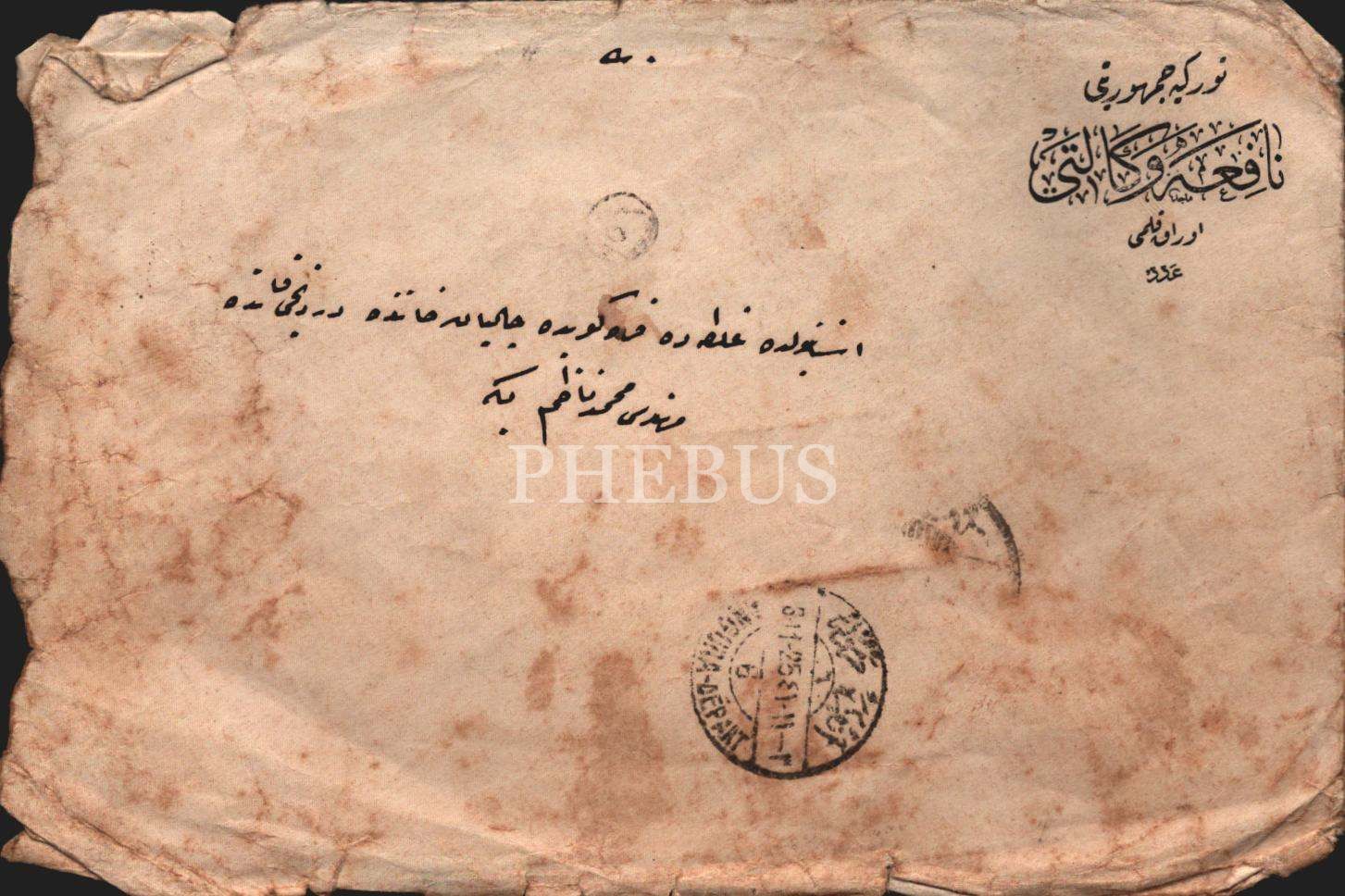 Nafia Vekaleti´den Mühendis Nazım Beyefendi´ye gönderilen zarf ve evraklar
