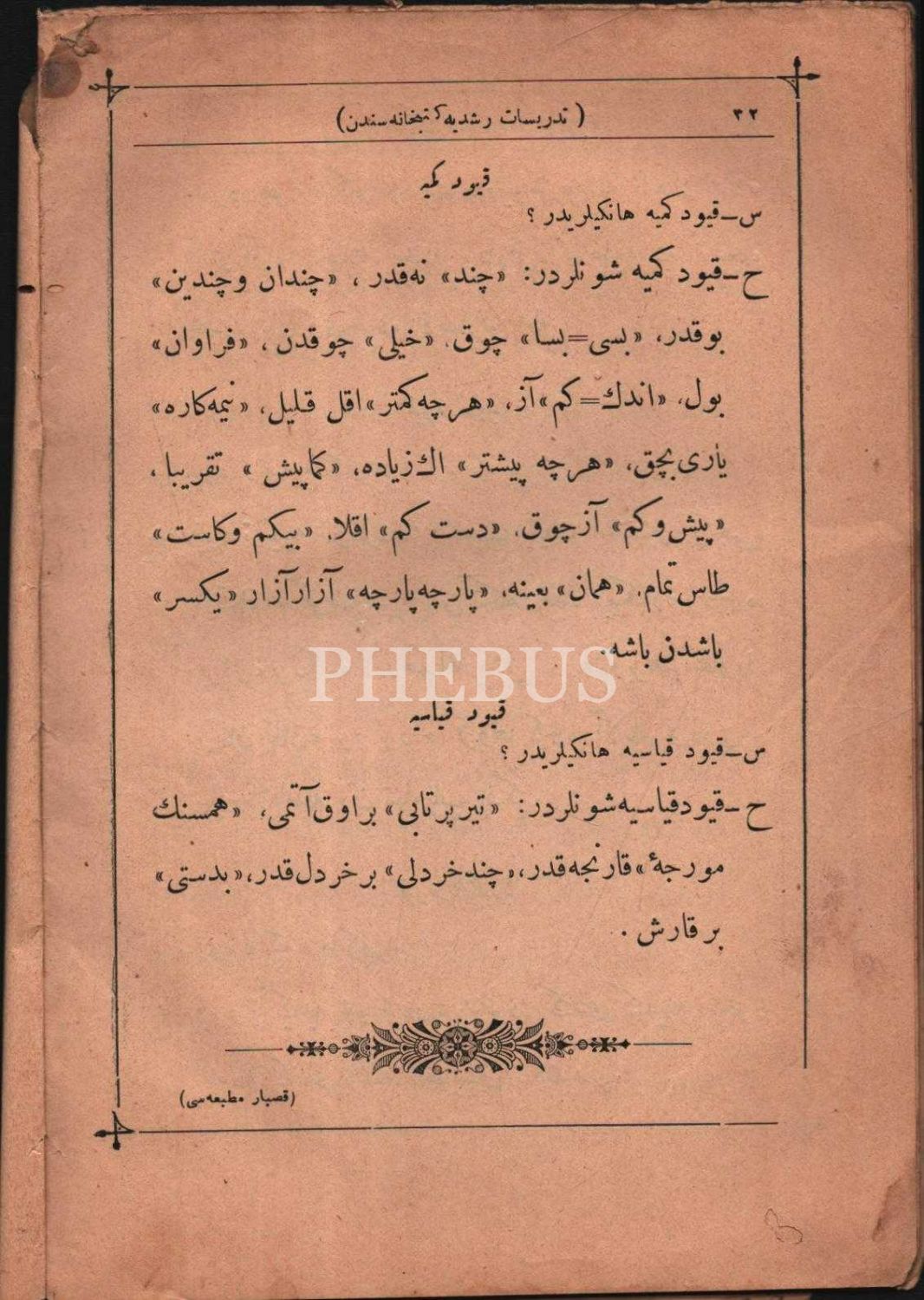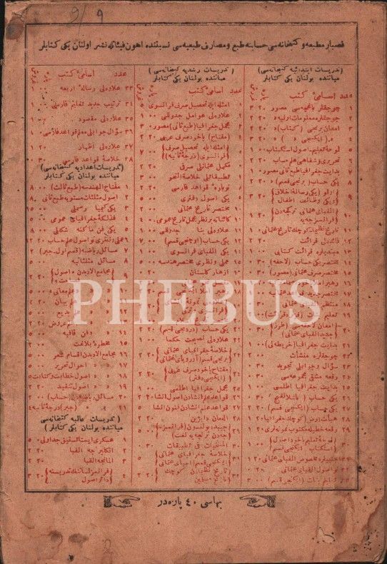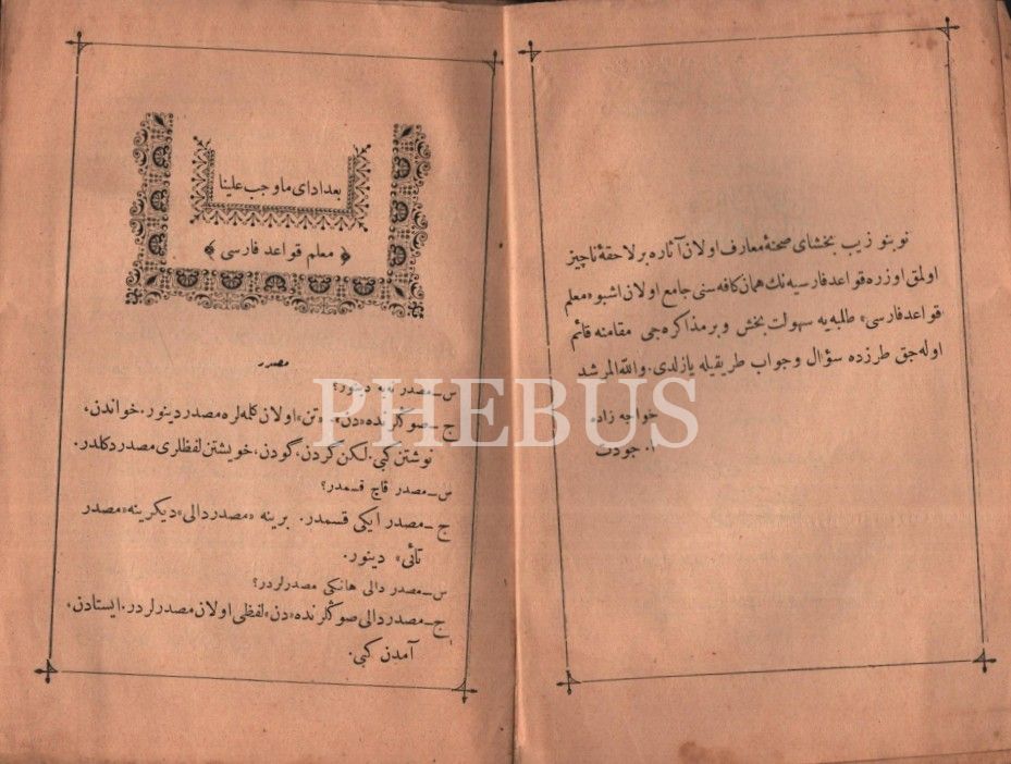 Suâlli ve Cevâblı MUALLİM-İ KAVÂİD-İ FÂRİSÎ Farsça Dilbilgisi], Hocazâde A. Cevdet, Kasbar Matbaası, İstanbul 1309, 32 s., 14x20 cm