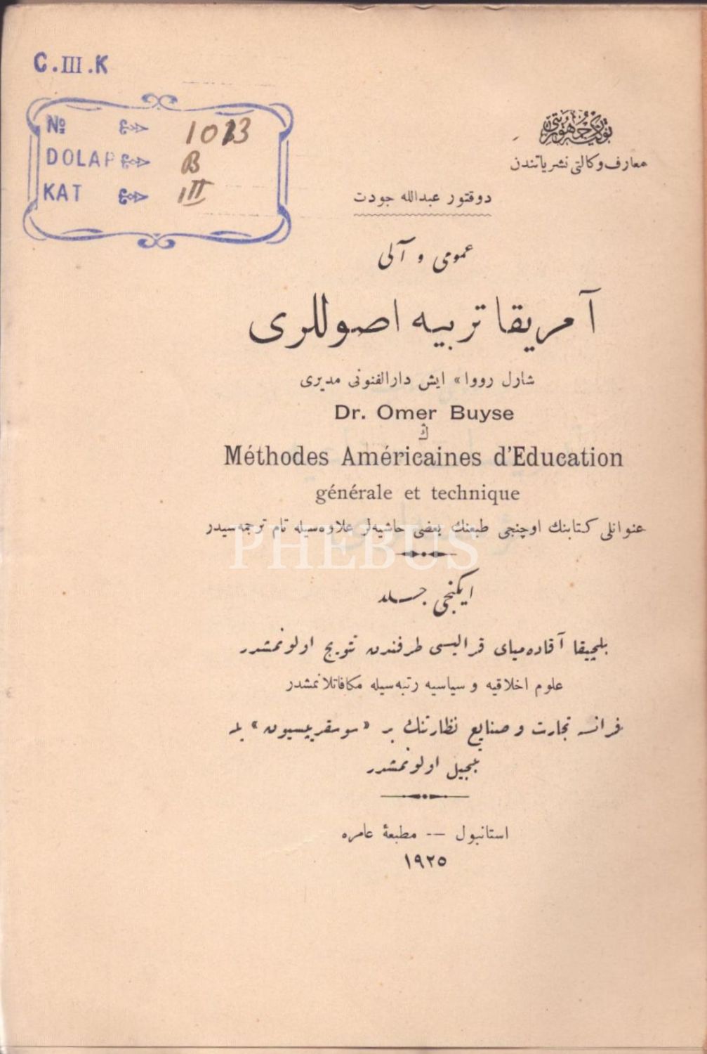 UMÛMÎ VE ÂLÎ AMERİKA TERBİYE USÛLLERİ (2. Cilt), Omer Buyse, çev. Abdullah Cevdet, Amire Matbaası, İstanbul 1926, 613-993 s., 15x21 cm