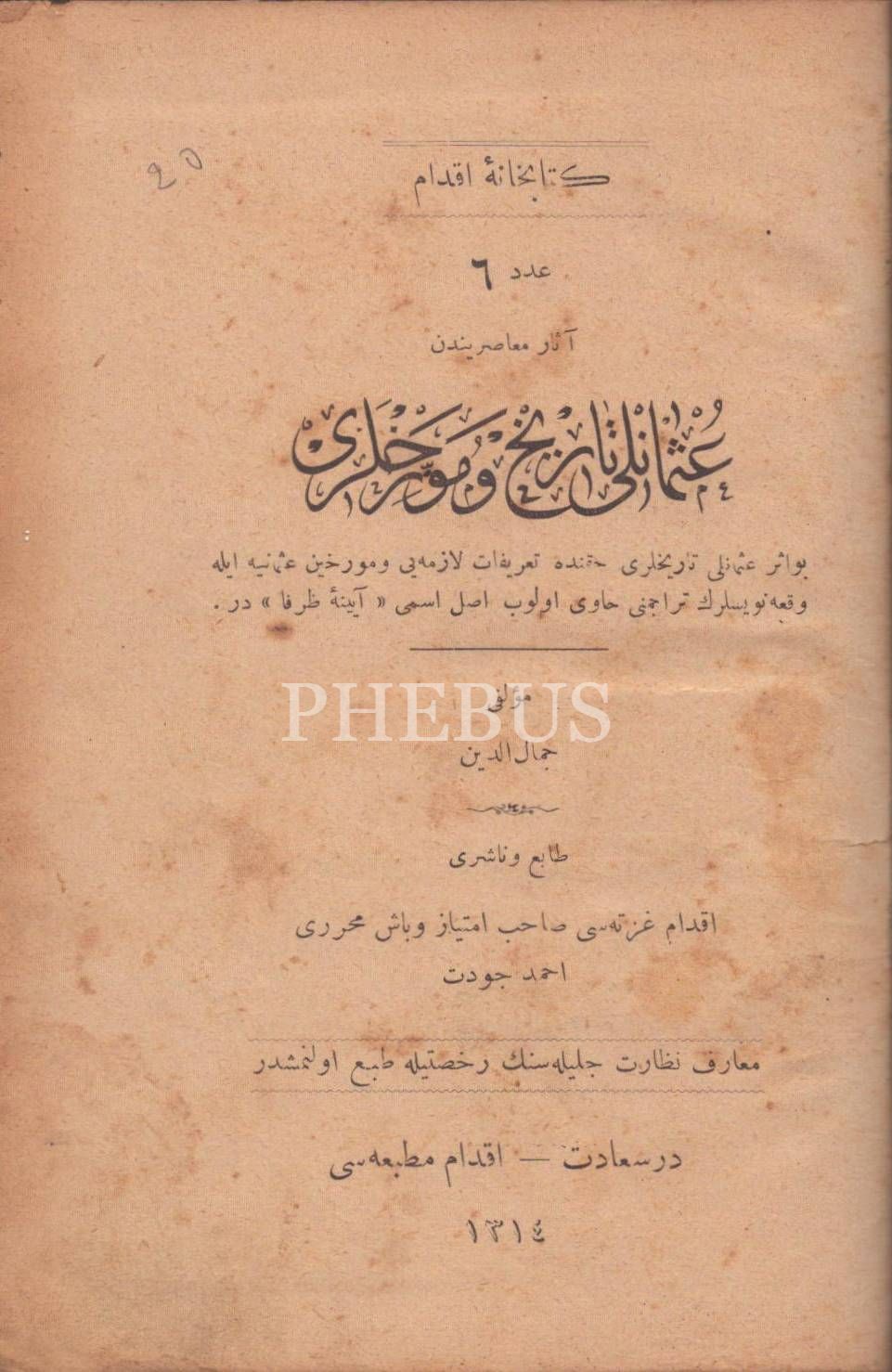 Âsâr-ı Muâsırînden OSMANLI TÂRÎH VE MÜVERRİHLERİ, Cemaleddin, İkdam Matbaası, İstanbul 1314, 156 s., 14x20 cm