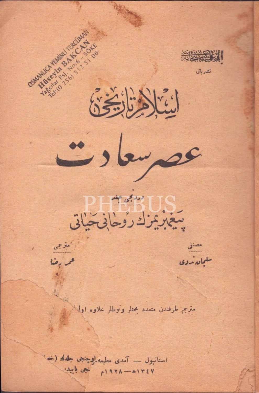 İSLÂM TÂRÎHİ ASR-I SAÂDET ve SADR-I İSLÂM (4-9. ciltler), Amedi ve Gündoğdu matbaaları, İstanbul 1928, 14x20 cm