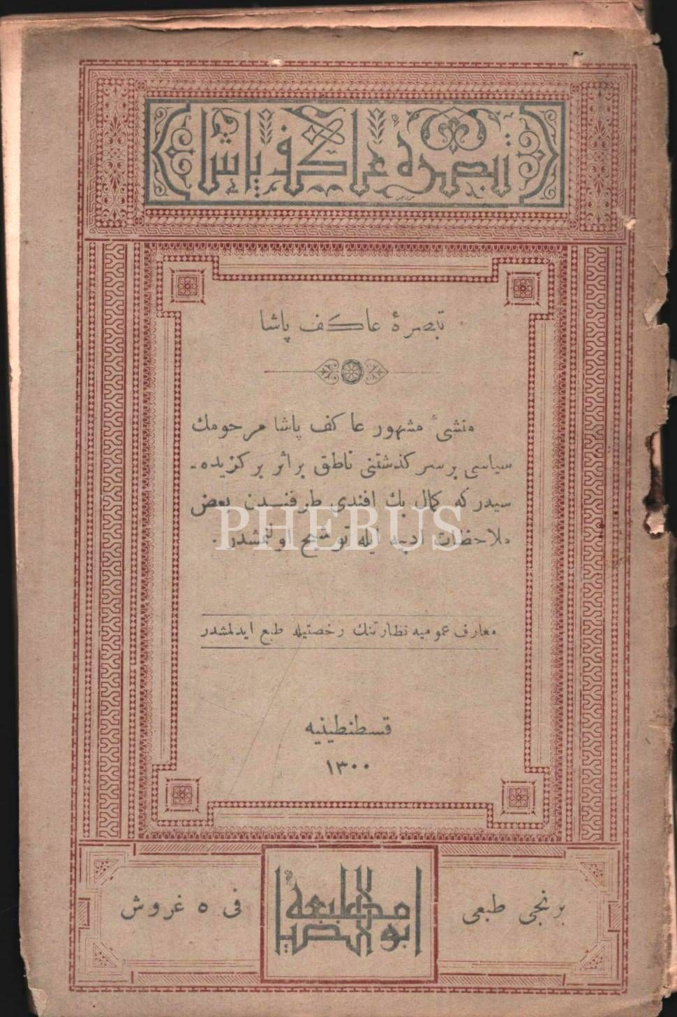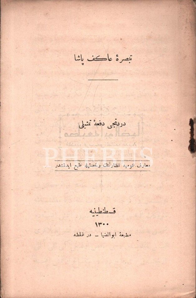 TABSIRA-İ ÂKİF PAŞA, Ebuzziya Matbaası, İstanbul 1300, 86 s., 12x18 cm